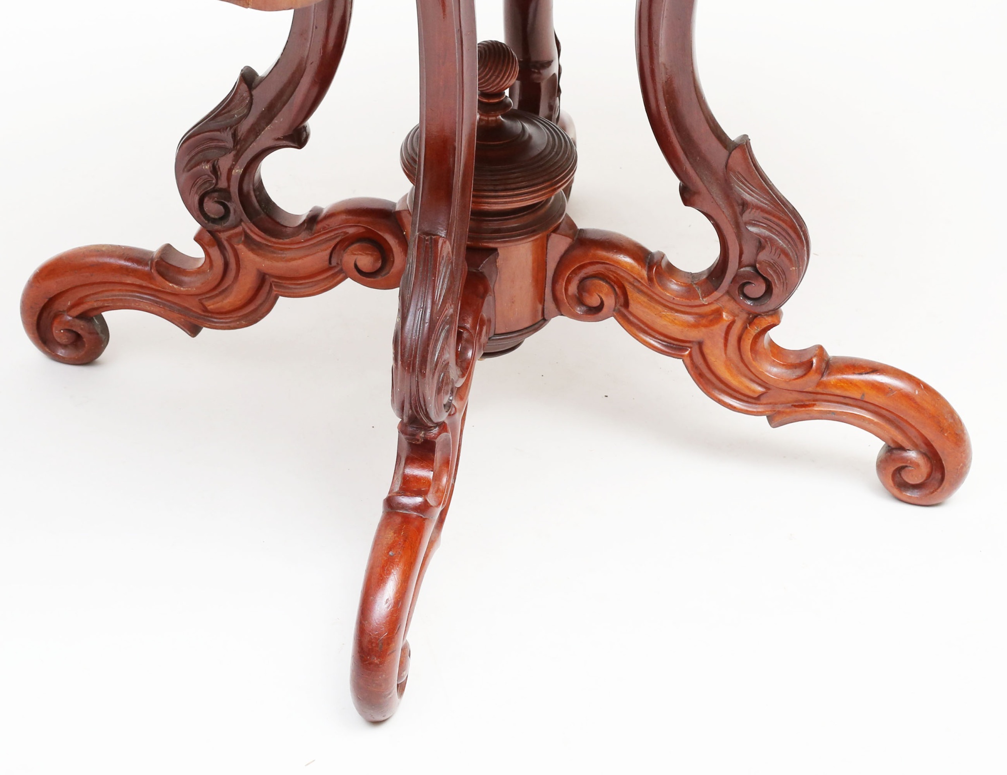 mahogny, konturerad skiva, fyrgrenad centralfot, höjd 74, bredd 115x76