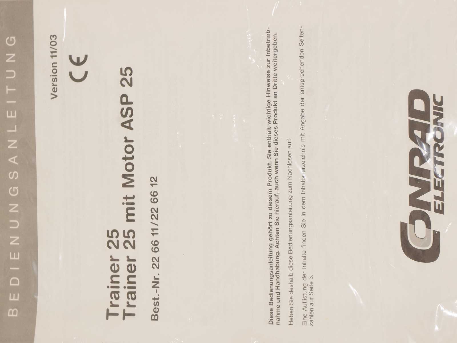 MODELLFLYGPLAN med motor, Conrad electronic "Trainer 25 med Motor ASP 25", vingbredd: 130cm (nyskick/oanvänt, ett trasigt plan medföljer som reservdelar)