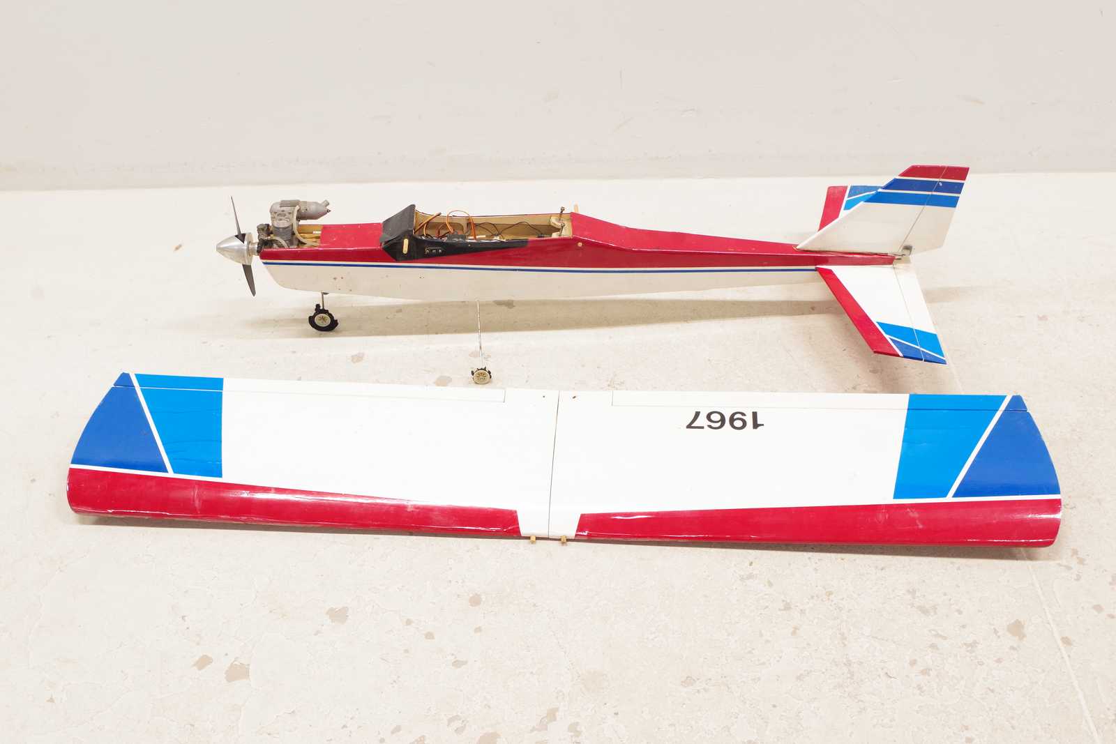 Bilder MODELLFLYGPLAN med motor, Conrad electronic "Trainer 25 med Motor ASP 25", vingbredd: 130cm (nyskick/oanvänt, ett trasigt plan medföljer som reservdelar)
