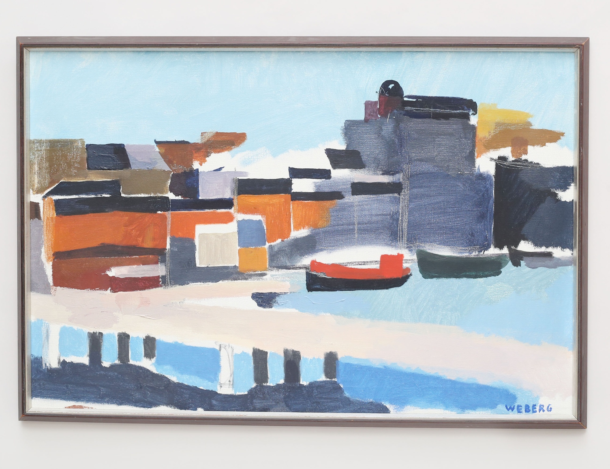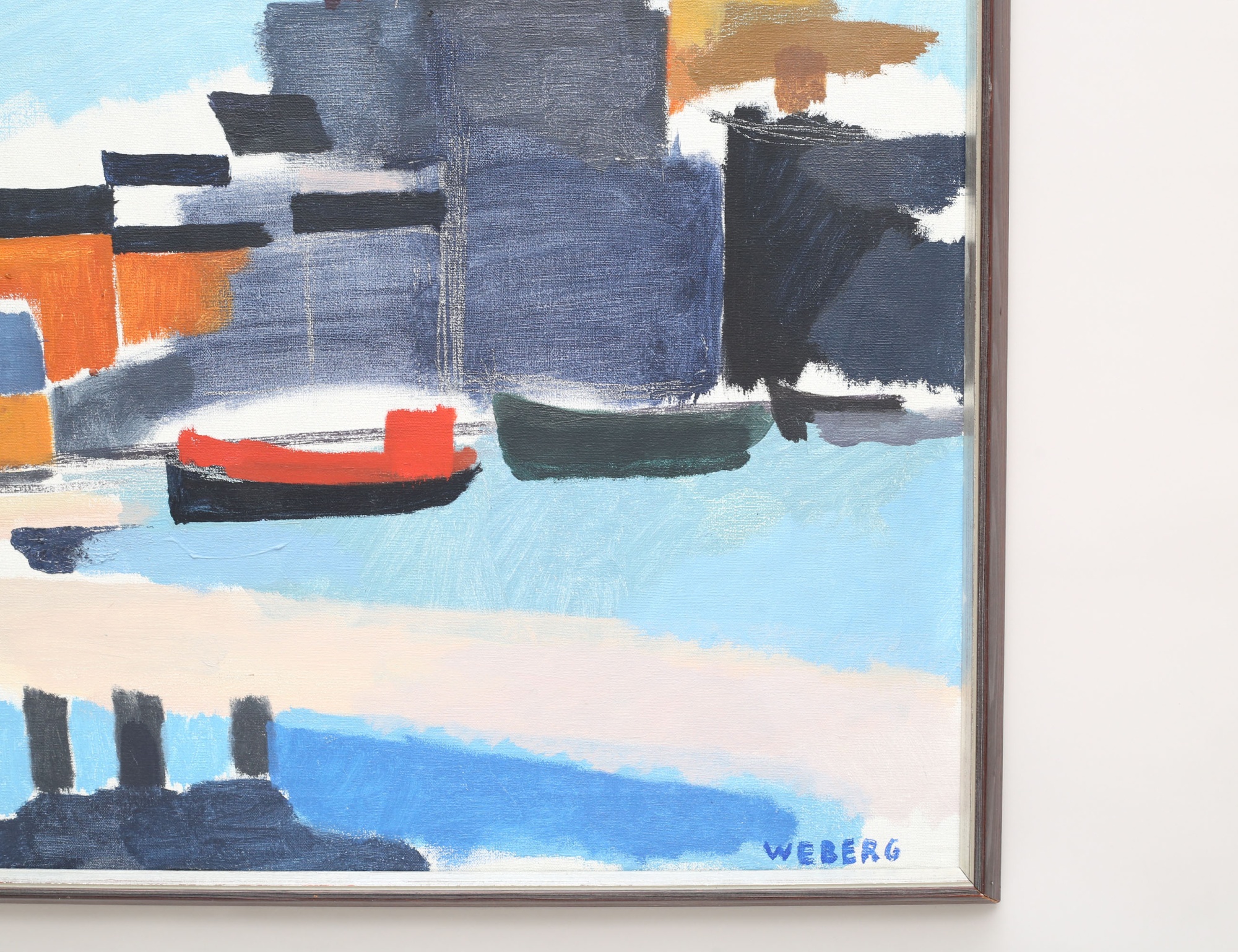 oljemålning på duk, hamnmotiv vinter, signerad, 52x78, rammått 57x83
