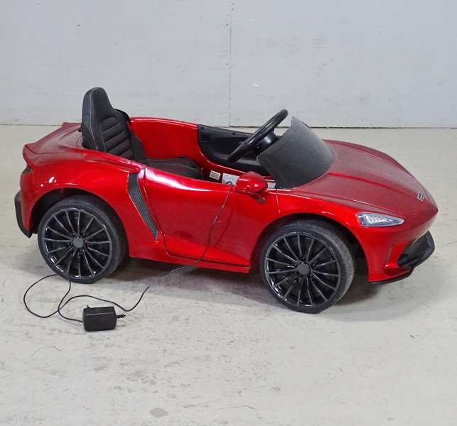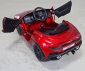 röd, måsfjärilsdörrar, gummidäck och lädersäte, 2*12 volt batterier på varje bakhjul, hastighet upp till 5 km/h, fjärrkontroll, belysning, musikmodul TF, MP3 och USB-ingång m.m.