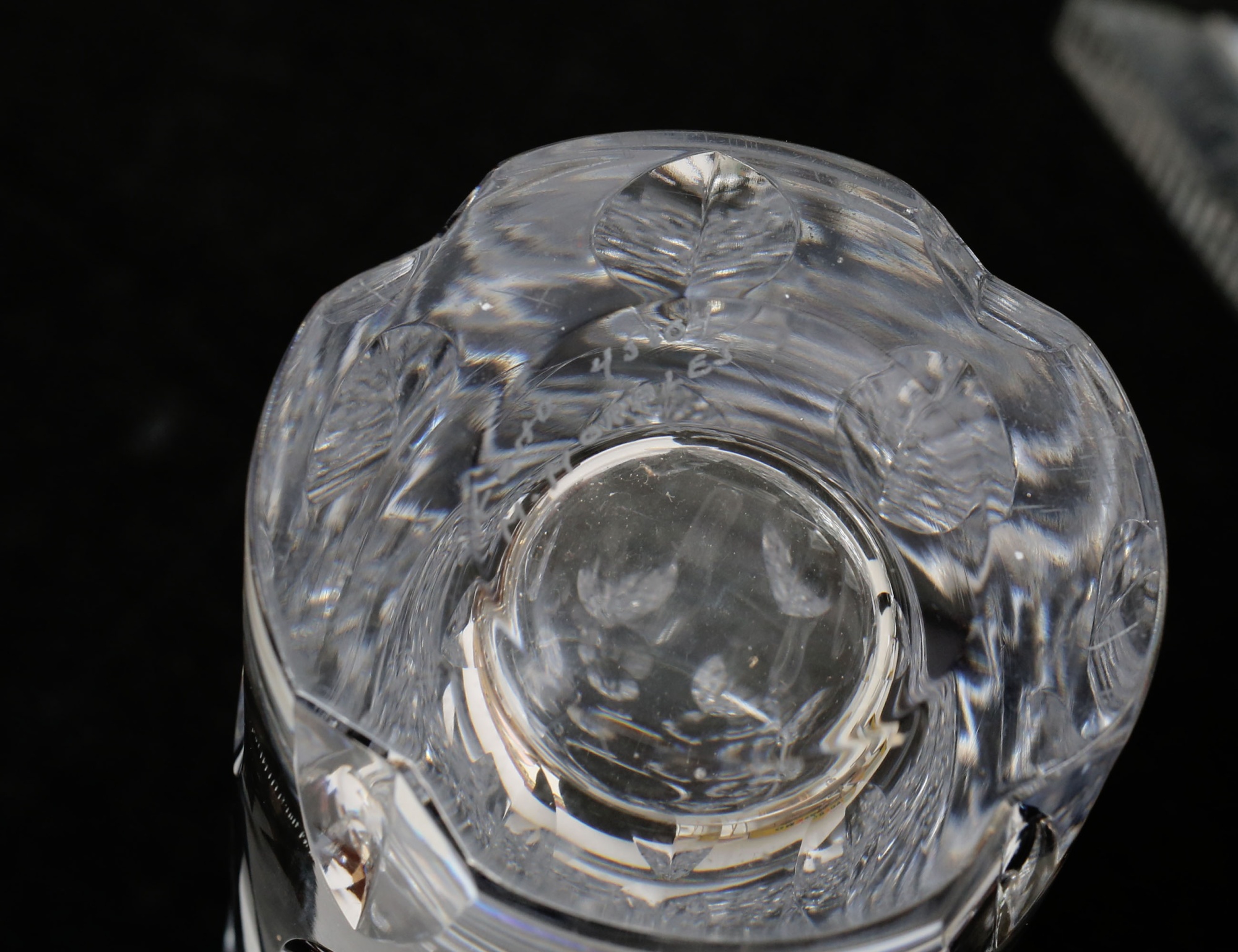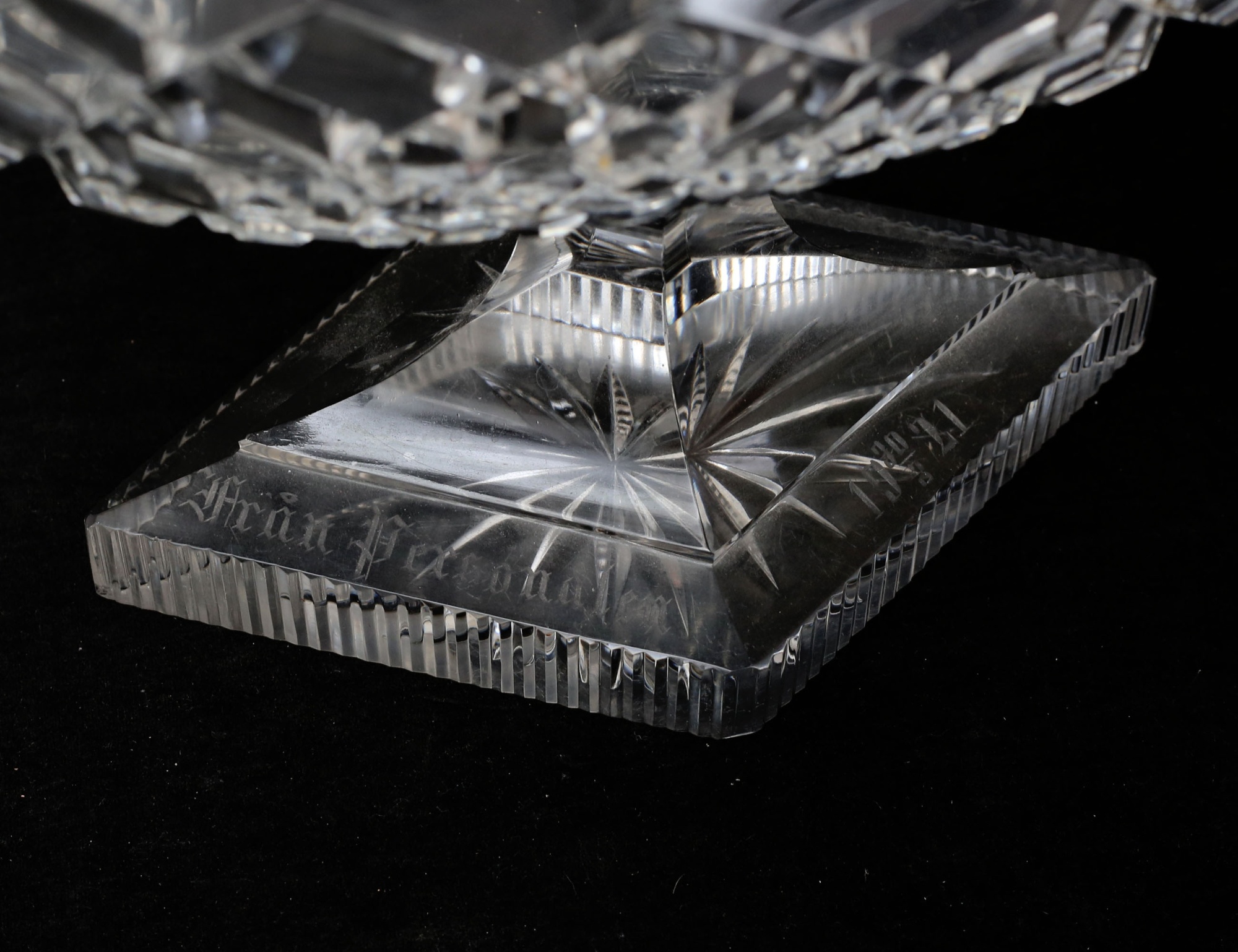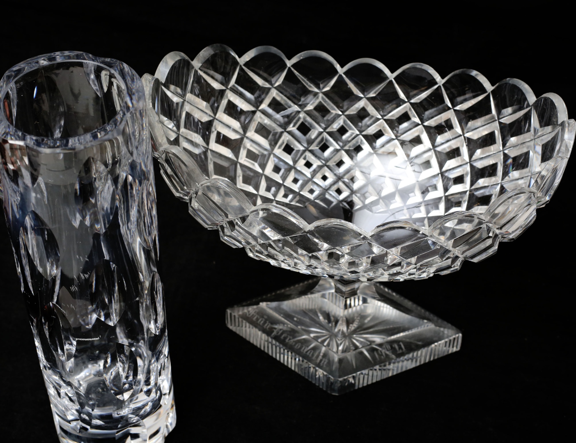 signerad 45804, höjd 27,5, skål på fot, rutslipad kristall, höjd 22, bredd 26 (inskription) (2)