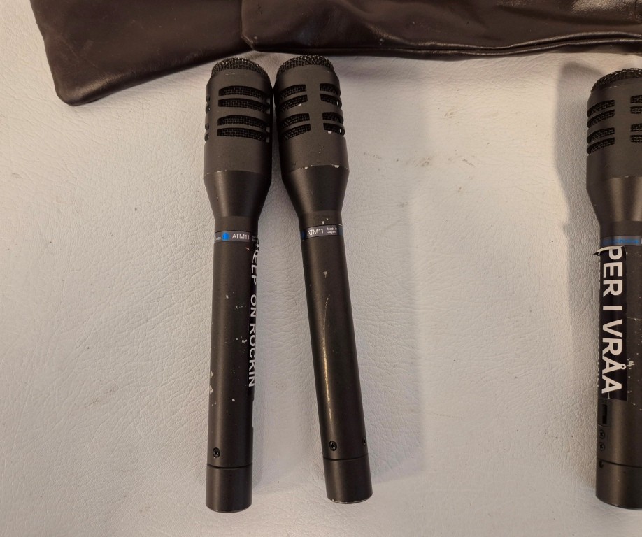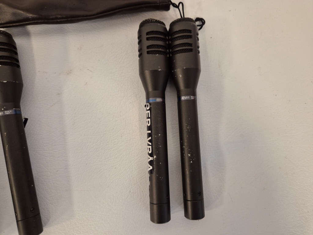 4st mikrofoner Audio TechnicaModell: atm 11Drivs med 1st AA-batteri (medföljer ej)Funktionstestade: 2st Ok, 1st överslag, 1st defekt