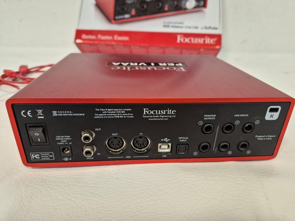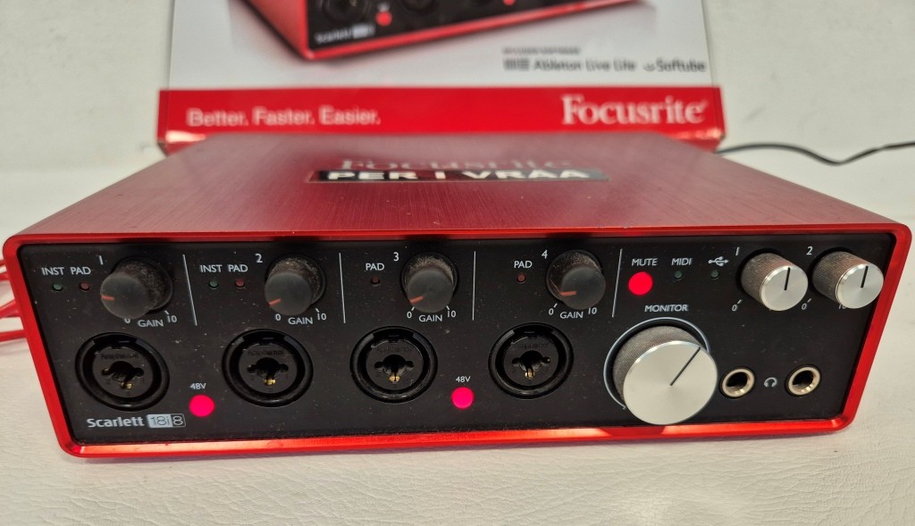 Mickförstärkare ScarlettModell: 18i8Anmärkning: Saknar nätdel (12V), startar upp men är ej funktionstestad