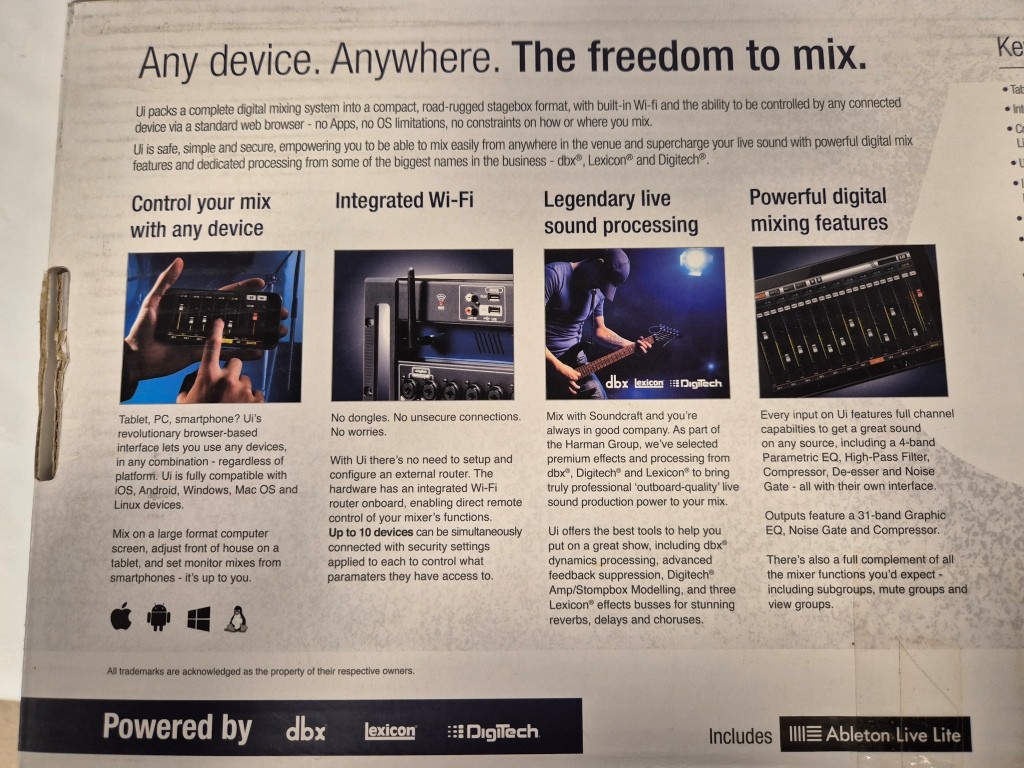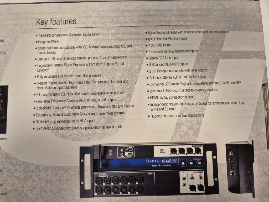 Digital Mixer SoundcraftModell: ui16Anmärkning: Startar upp men är ej funktionstestad