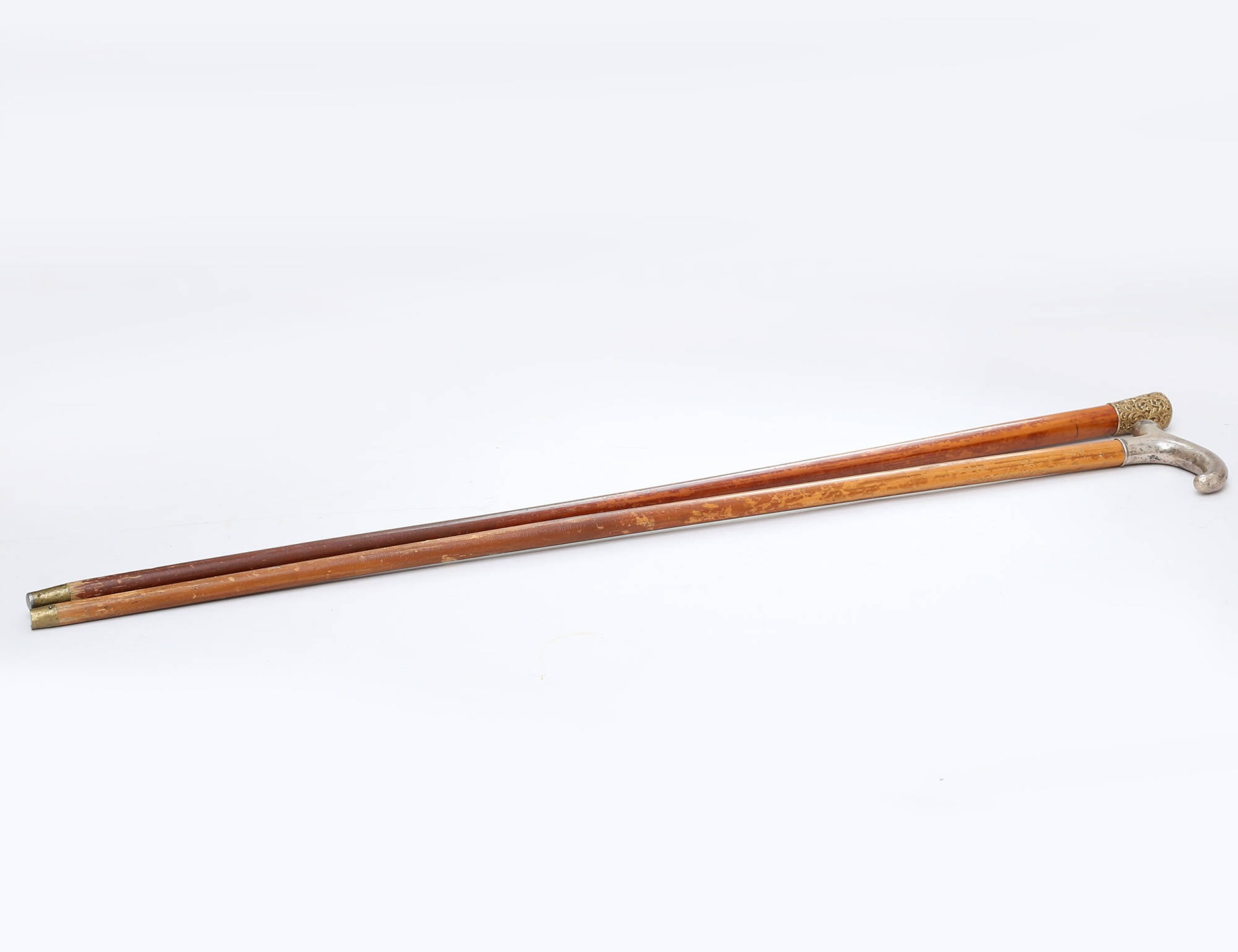 en med handtag i silver, en med knopp i punsad mässing, längd 90/92