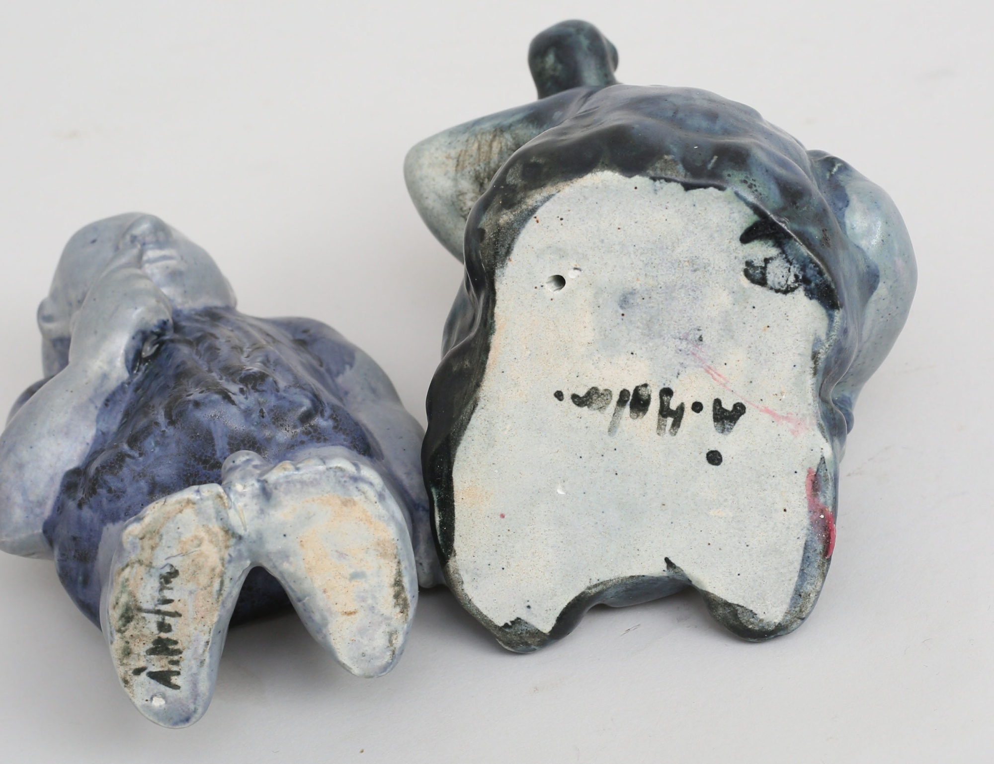 i form av troll, glaserad keramik, signerade, höjd 10,5/13,5 (2)