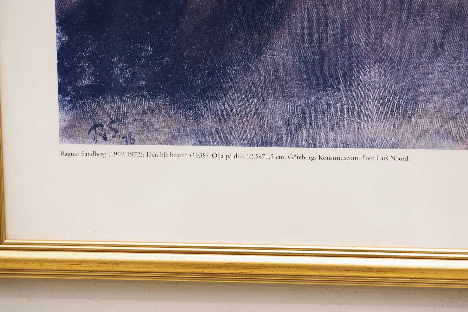Bilder TAVLA, tryck efter "Den blå bussen" Ragnar Sandberg, Palmeblads Göteborg 2001. 57x54cm rammått