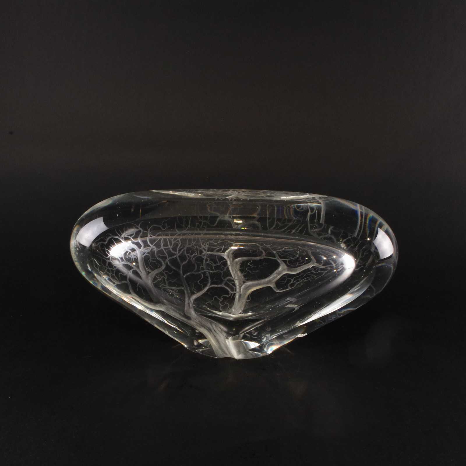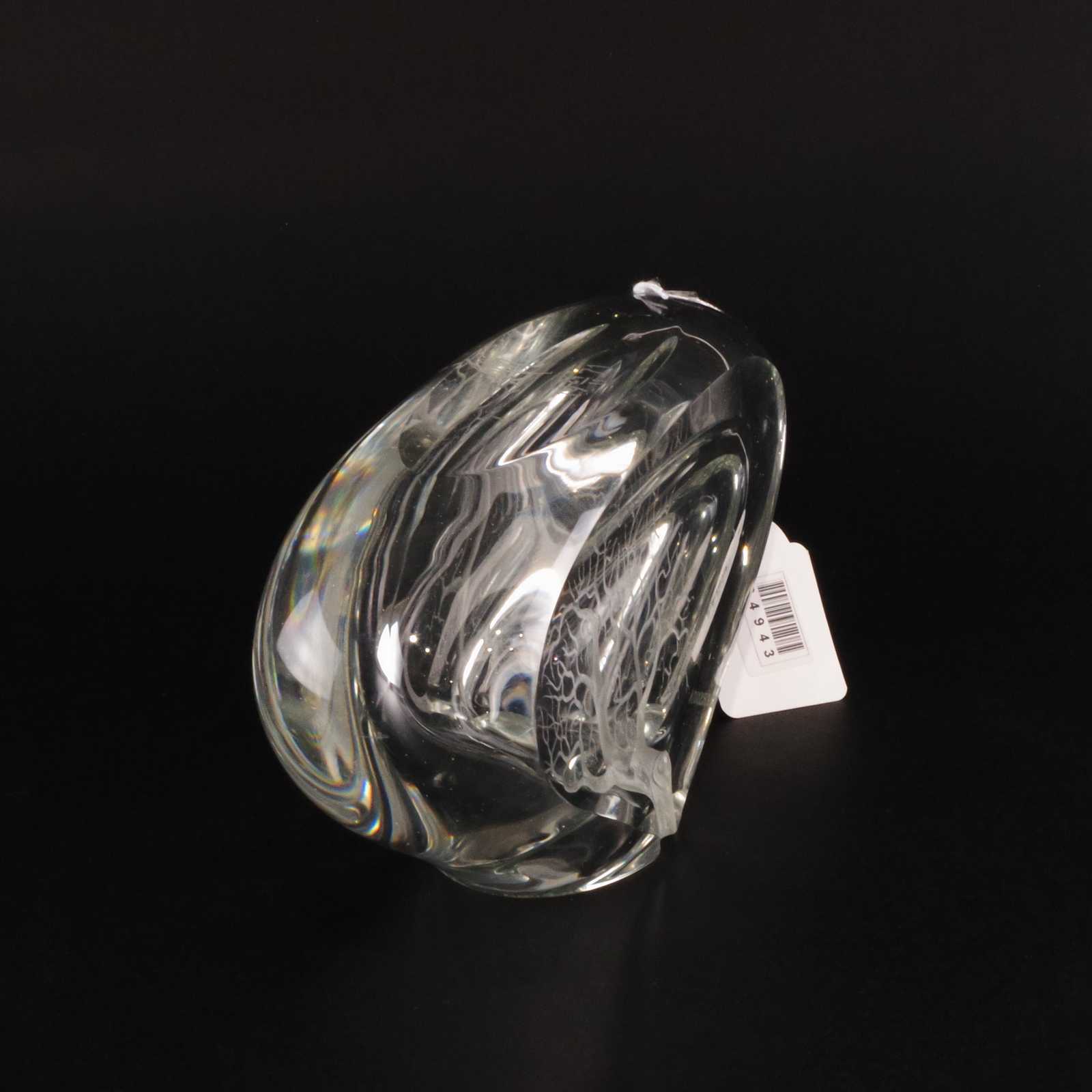 GLASSKULPTUR slipad dekor. Inskription. H:13cm B:27cm.