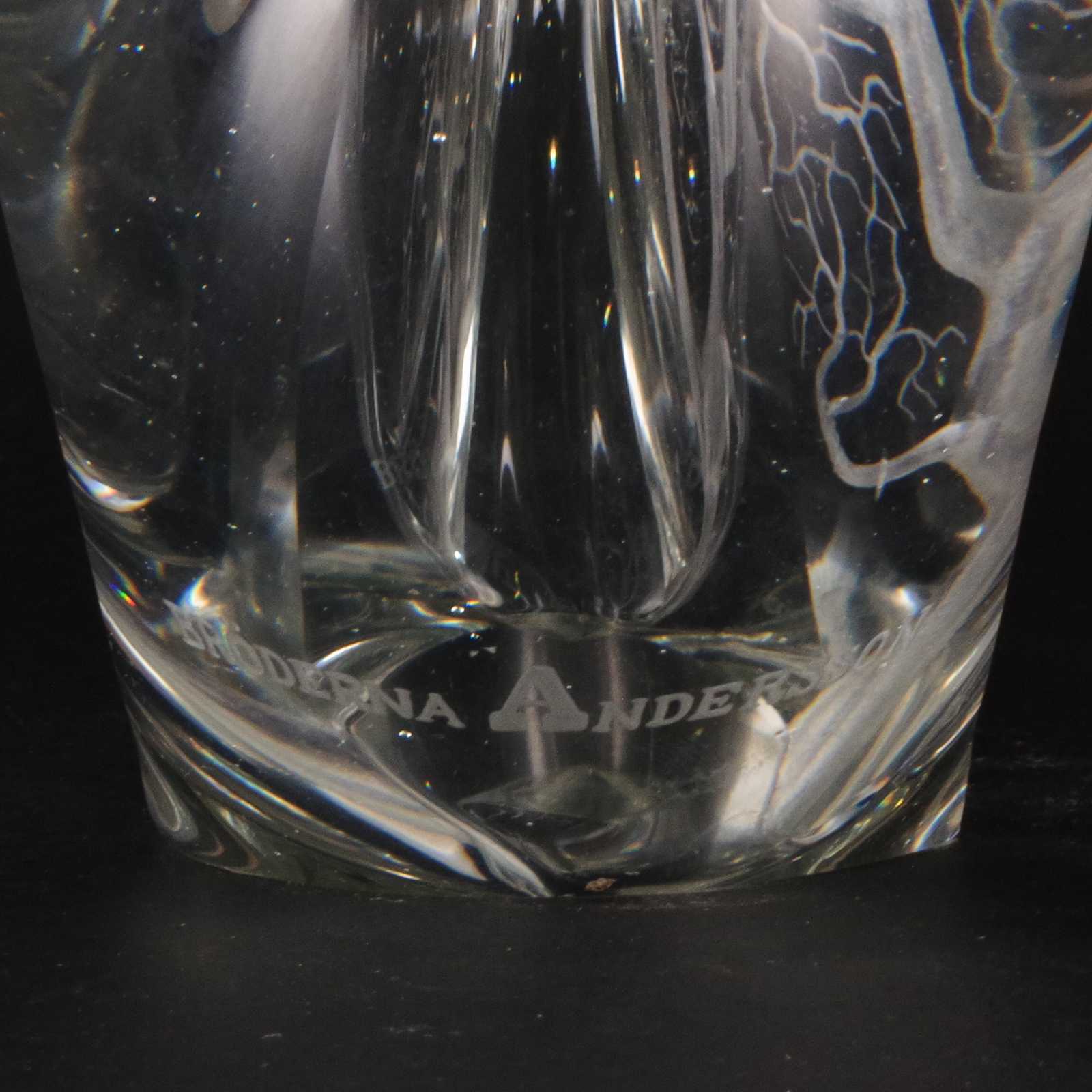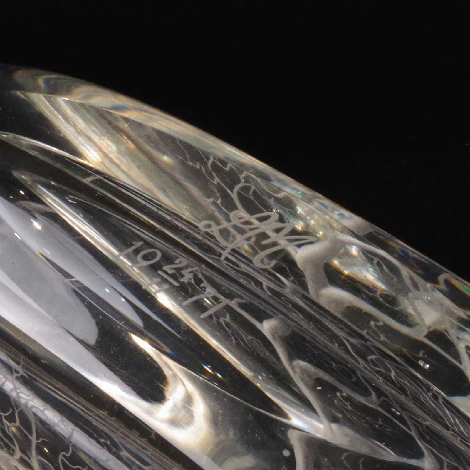 Bilder GLASSKULPTUR slipad dekor. Inskription. H:13cm B:27cm.