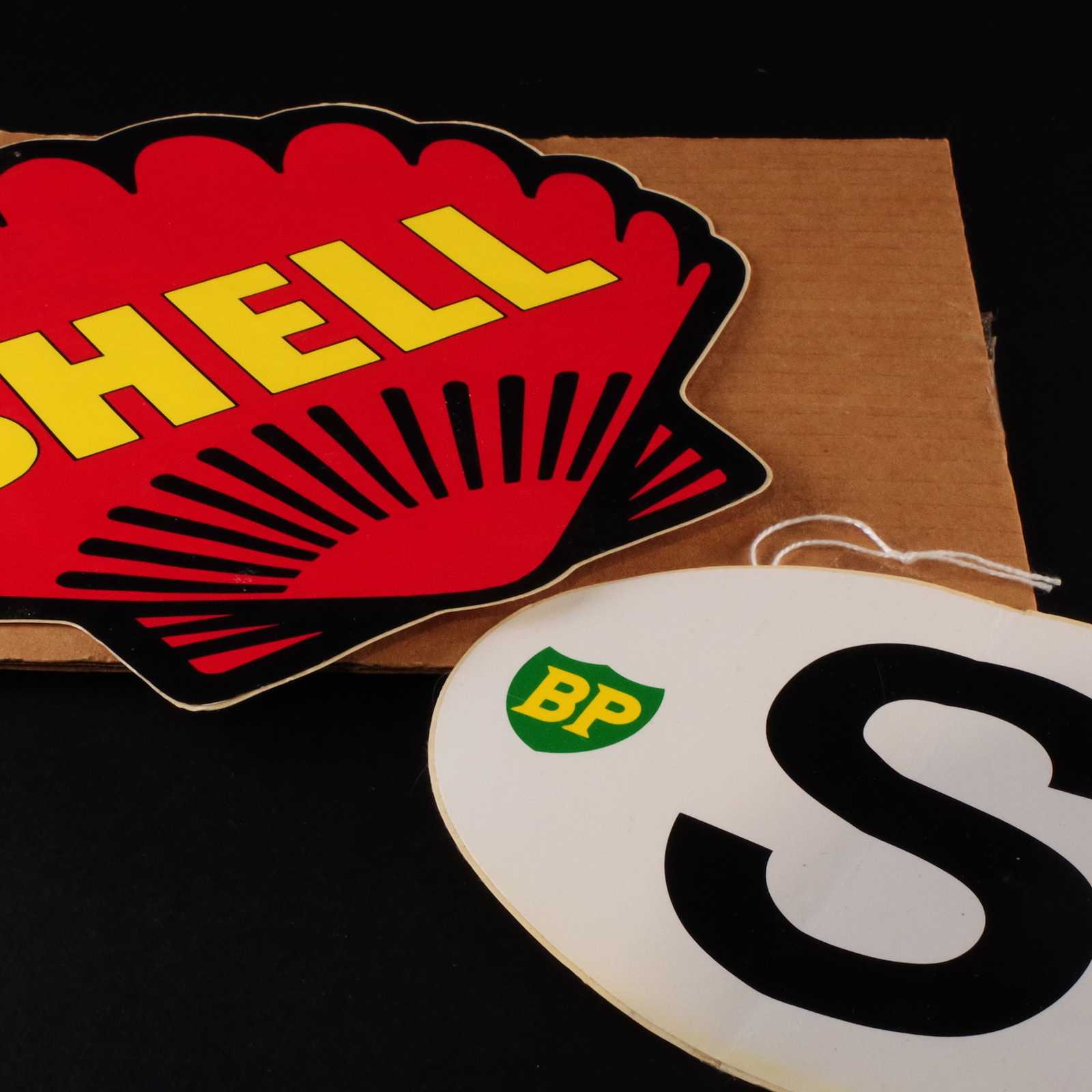 Bilder REKLAMKLISTERMÄRKEN Shell & BP. Oanvända. B:23cm största.