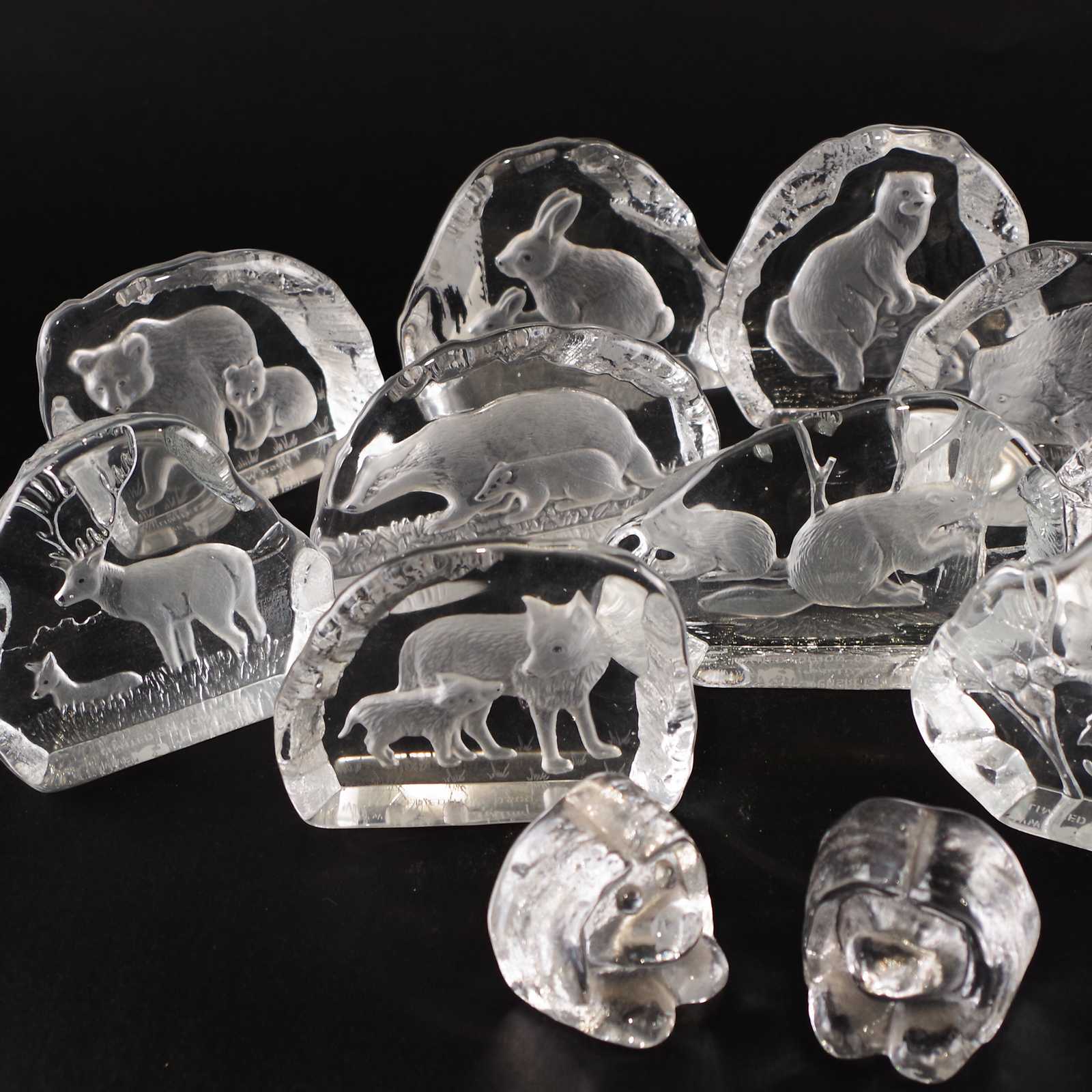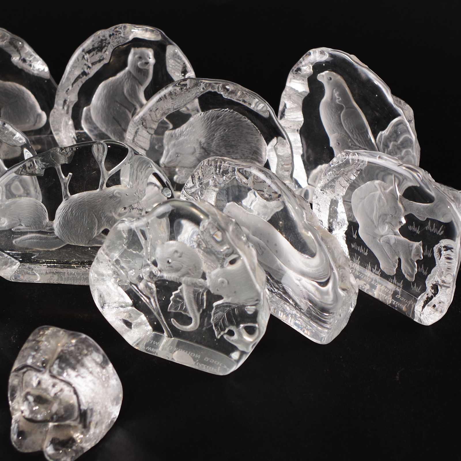 Bilder Parti KRISTALLBLOCK Svenskt Glas, WWF. H: ca 10cm.