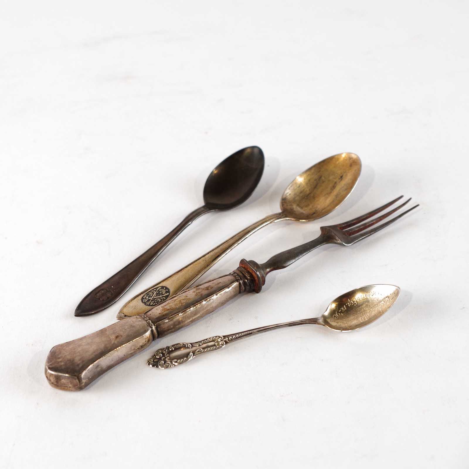 Auktioner Guld, Silver & Smycken BESTICK 4st silver. L:16cm. ca 60 gram. Inkl gaffel med rostfritt & silver.