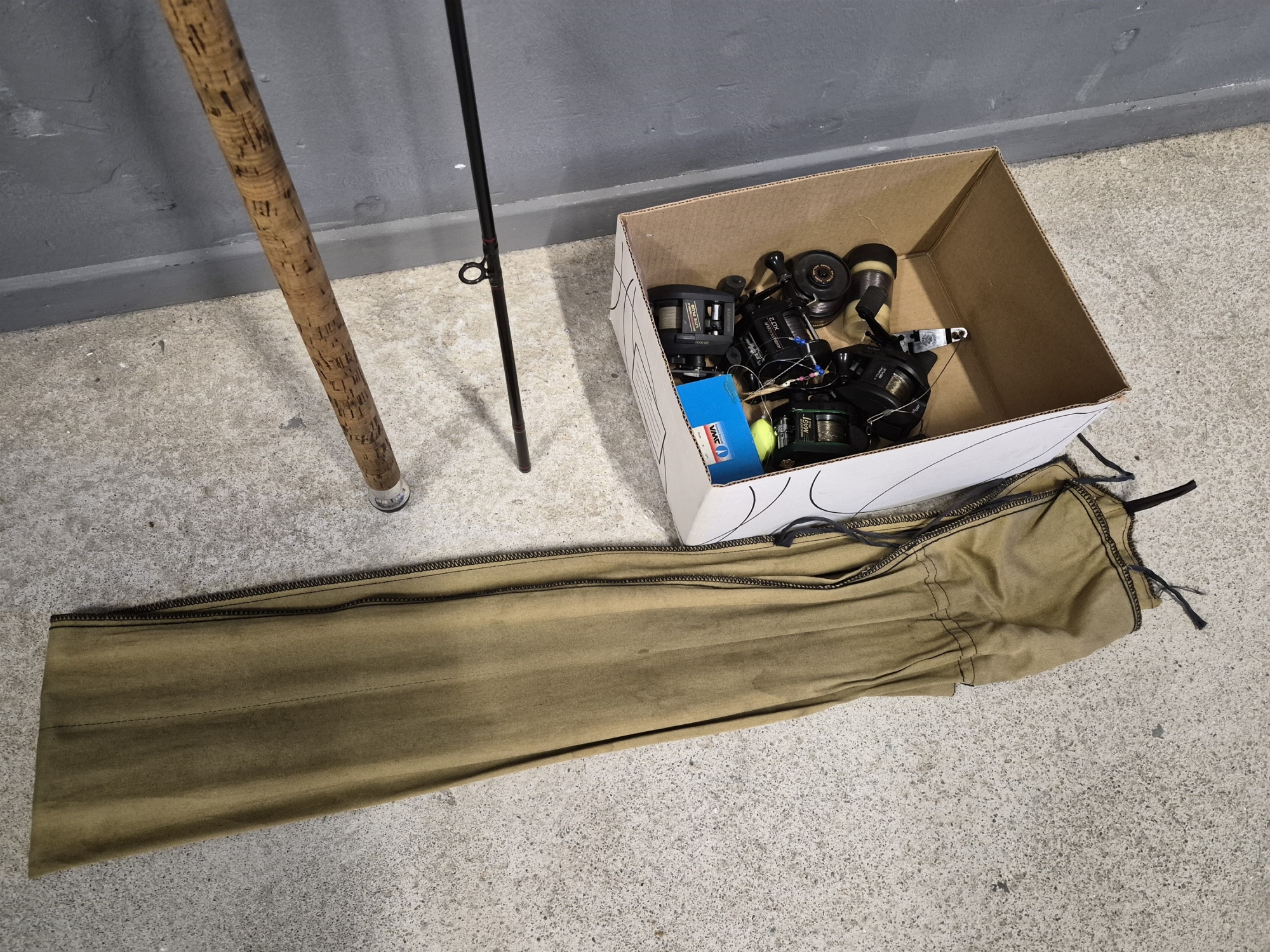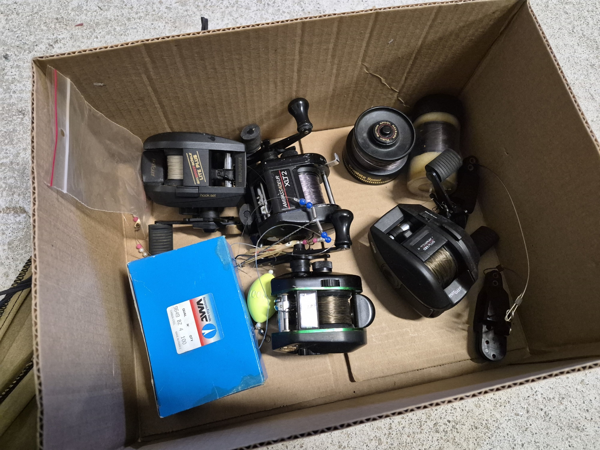 Fiskespö och låda med Ambassadeur rullar bl.a XLT2