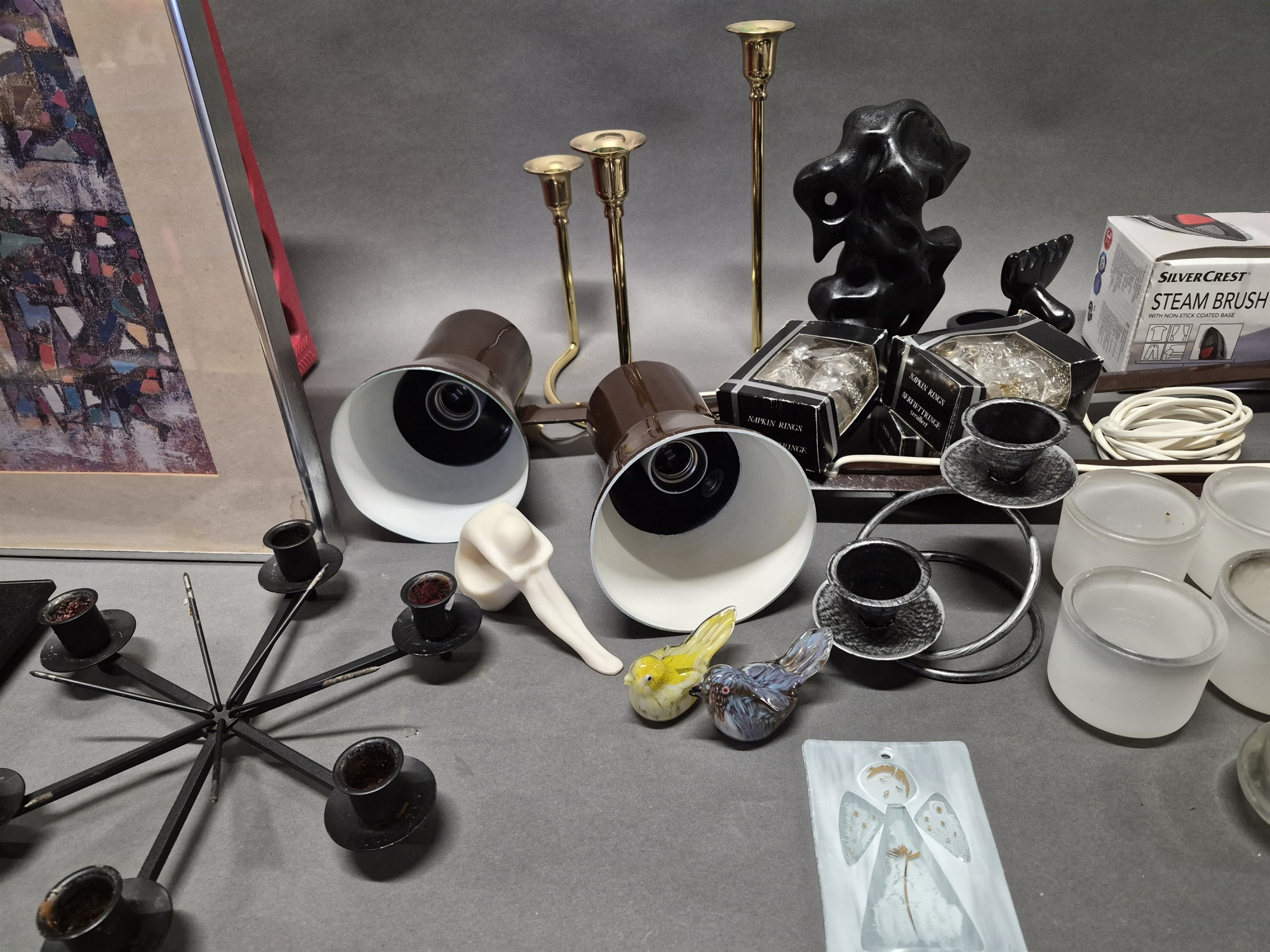 Parti bla tavla, metall och ljushållare, mått på tavla 65x56 cm
