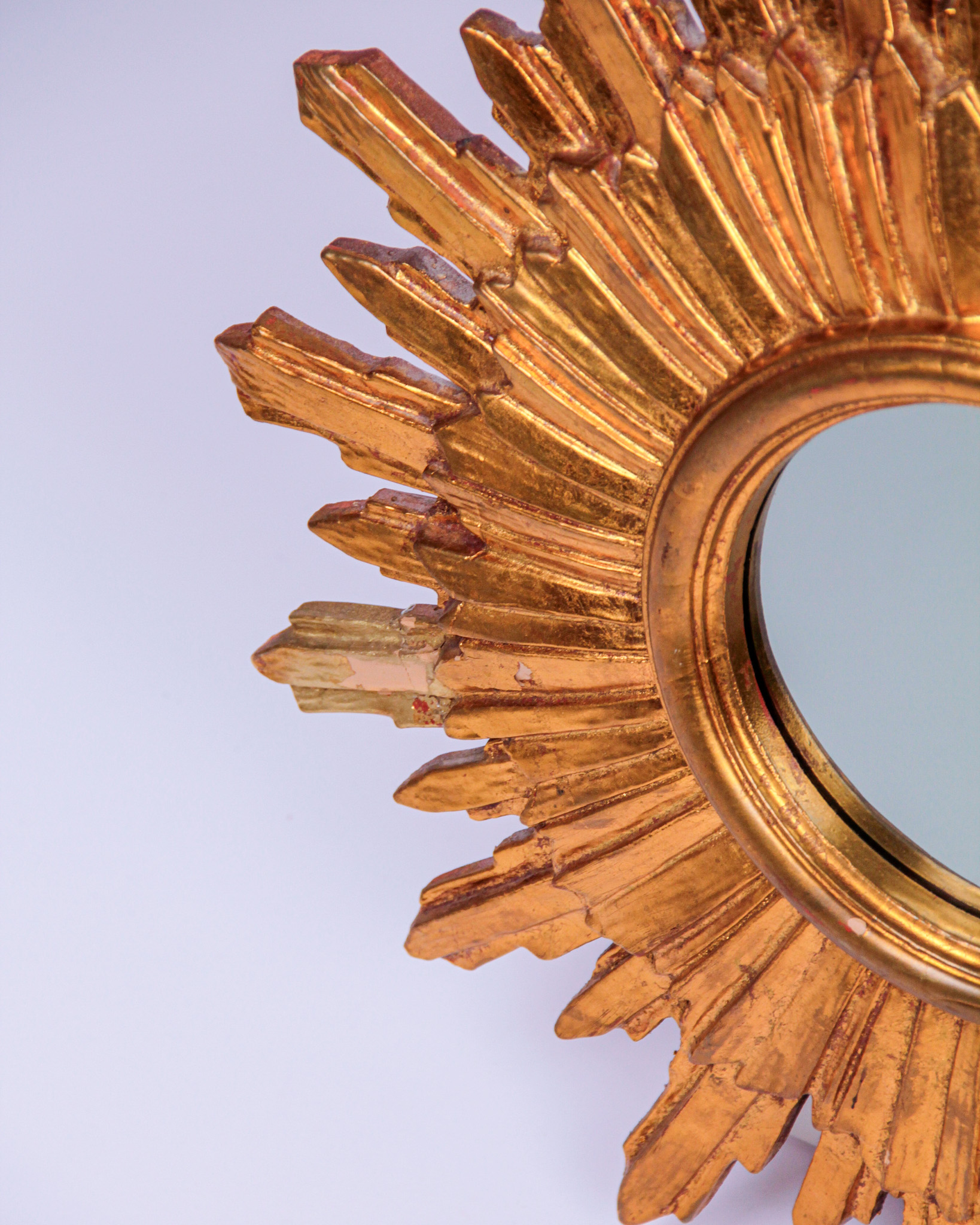 Solspegel, bemålat trä och spegelglas, 1900-tal