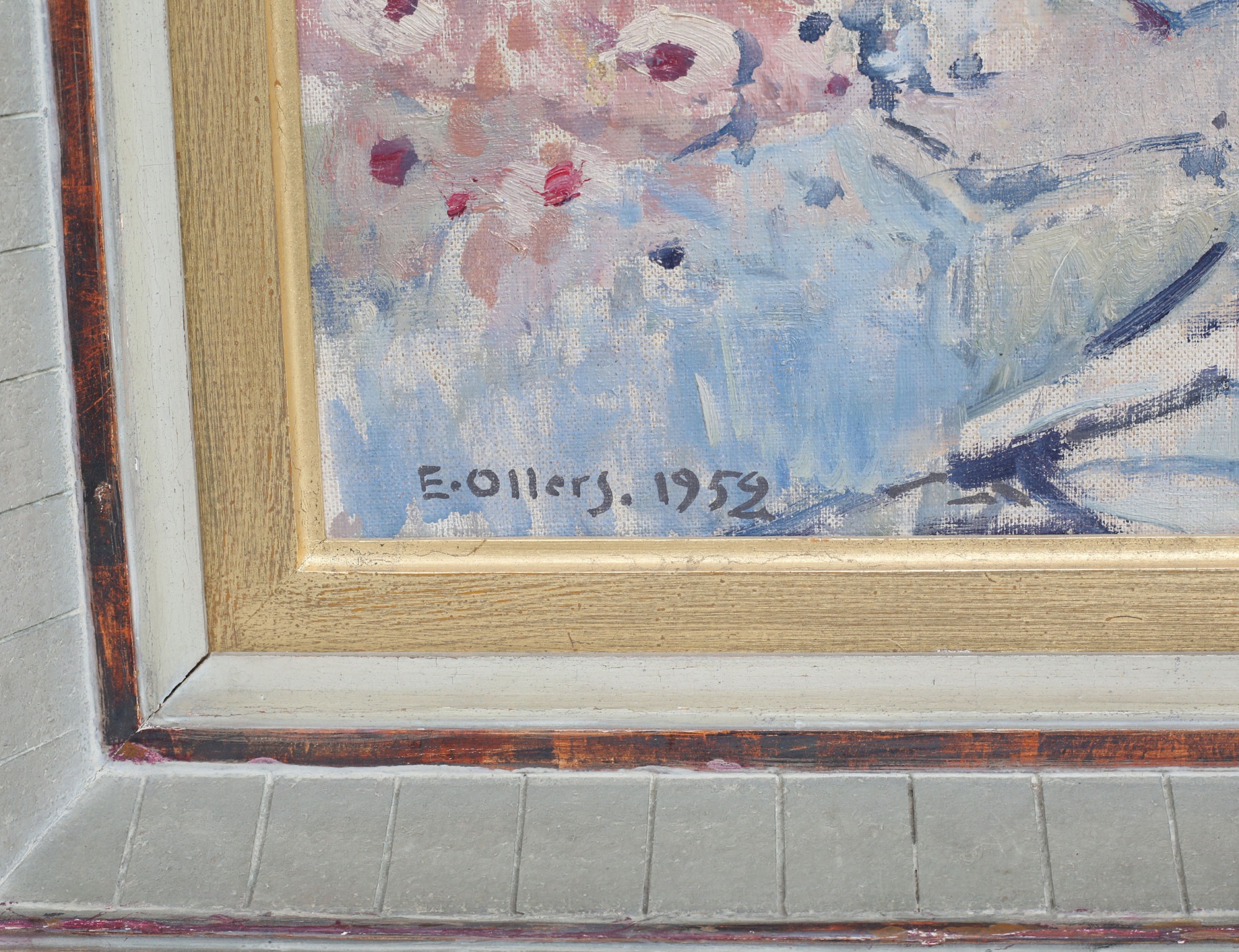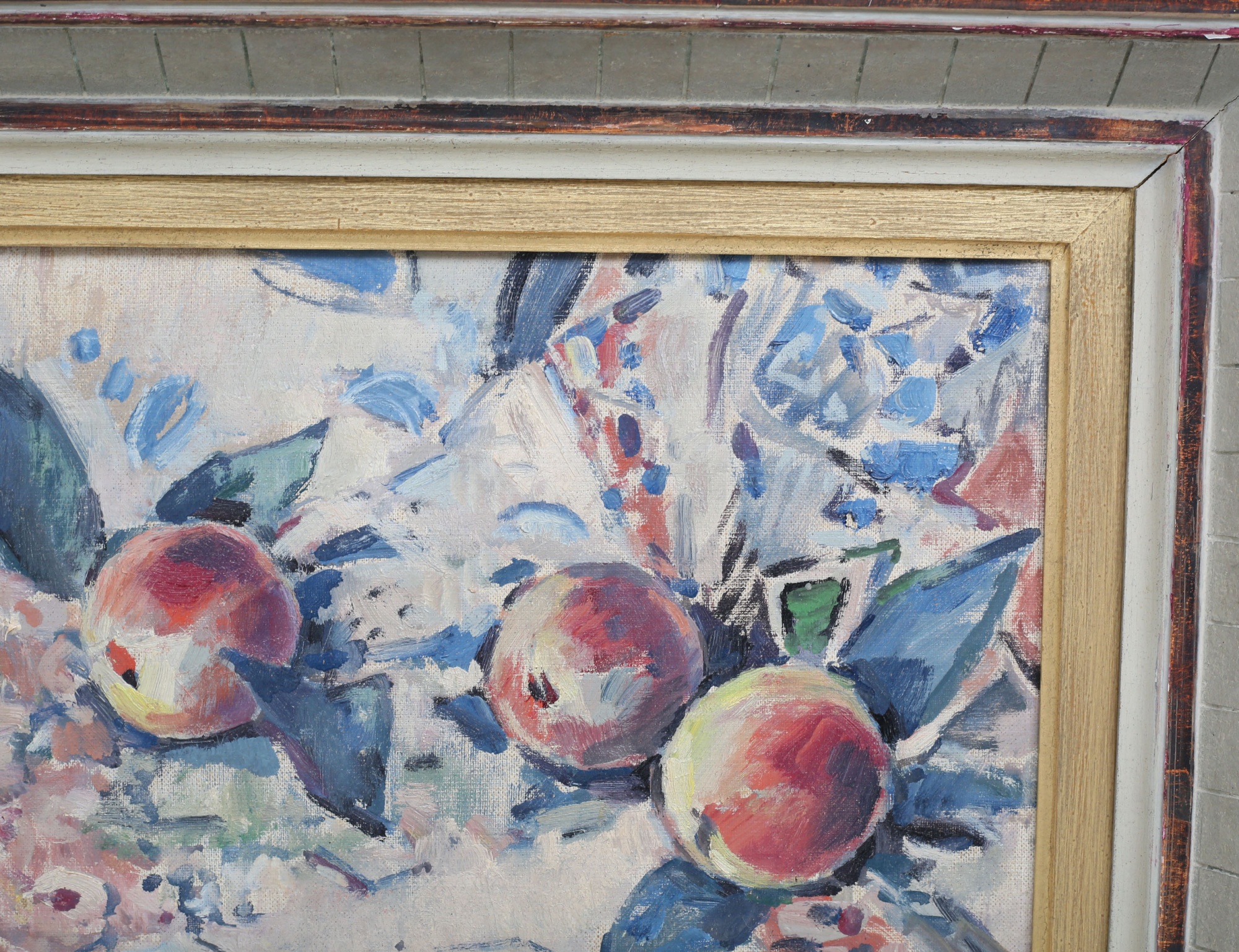 oljemålning på duk, stilleben med äpplen, signerad 1952, 33x41, rammått 47x50