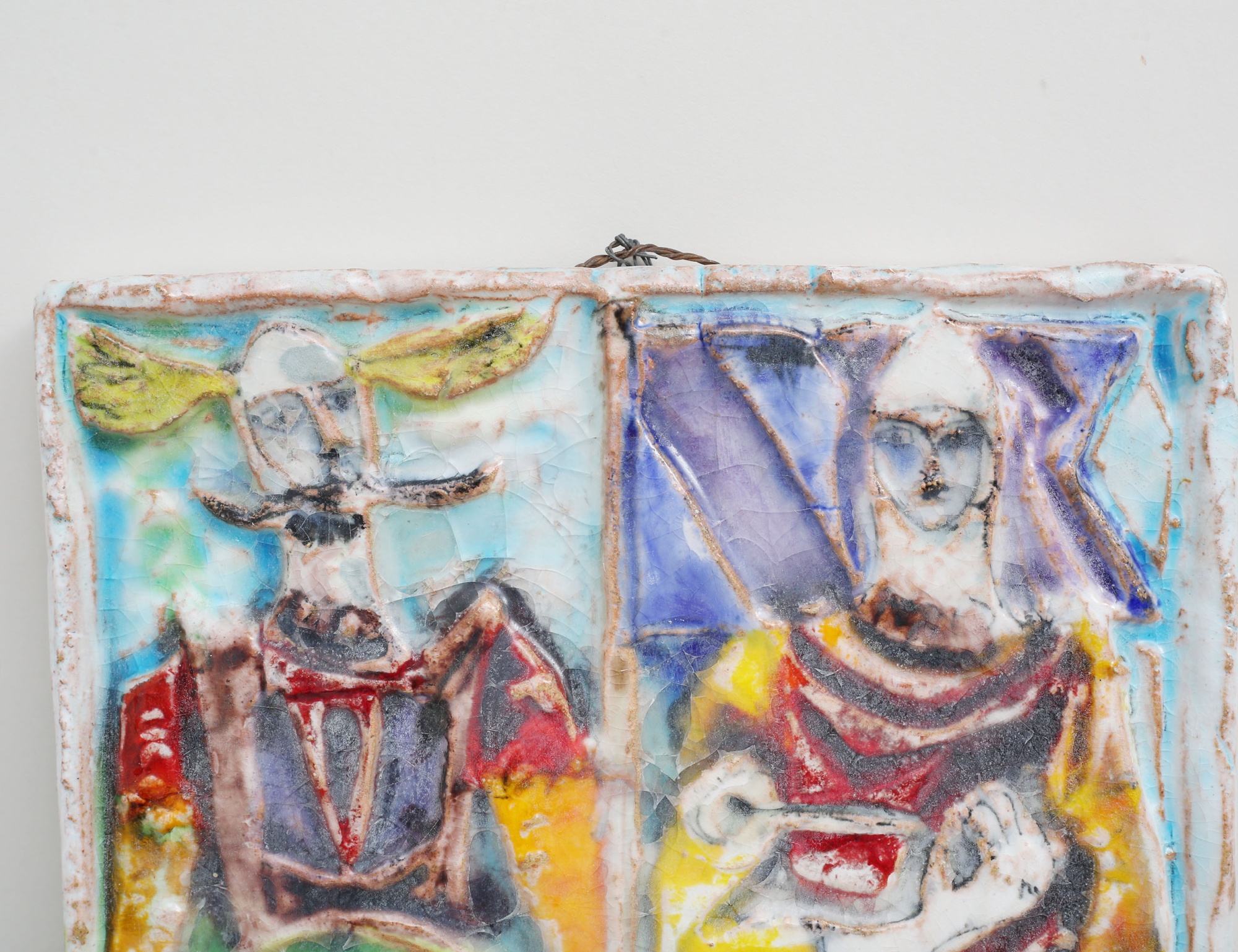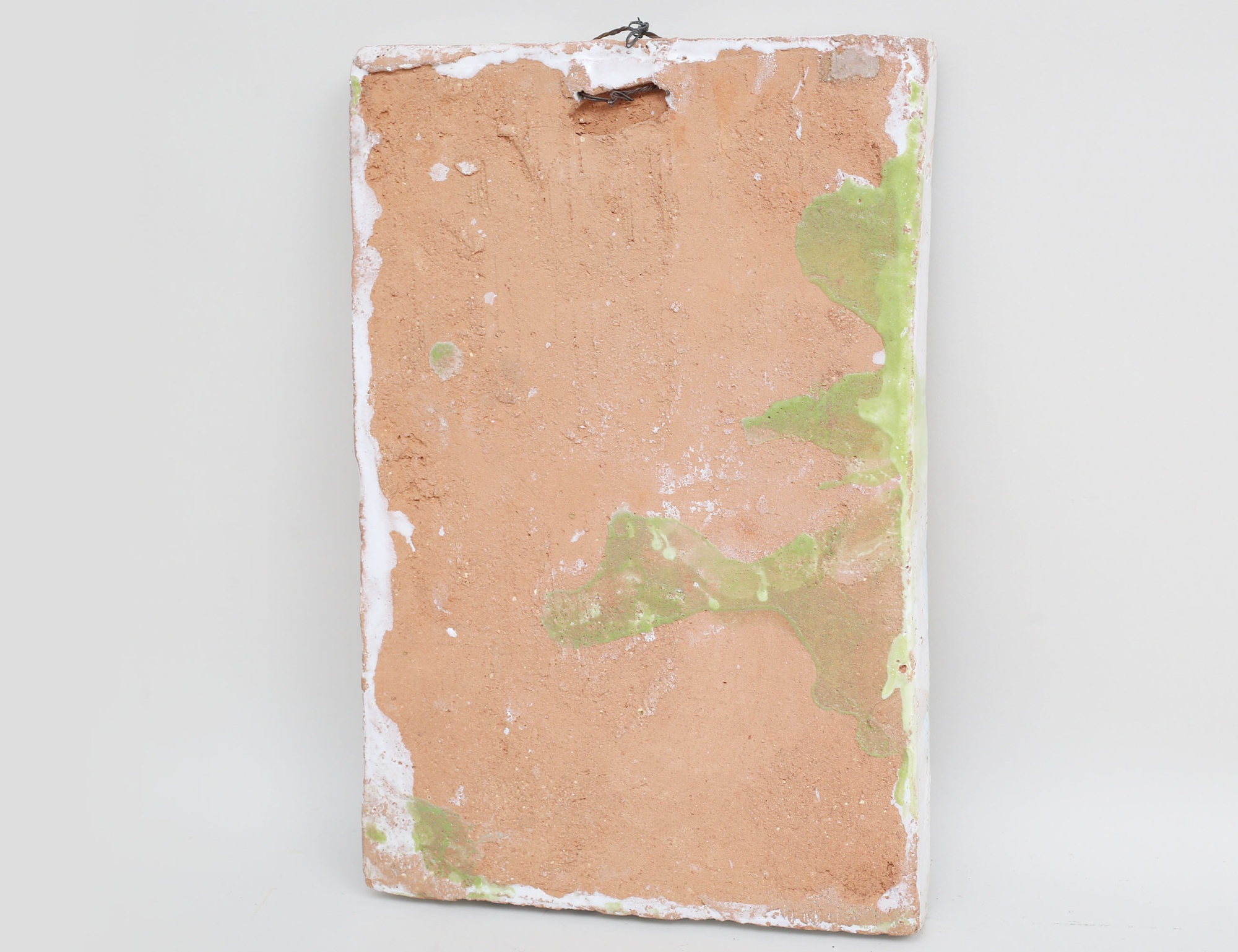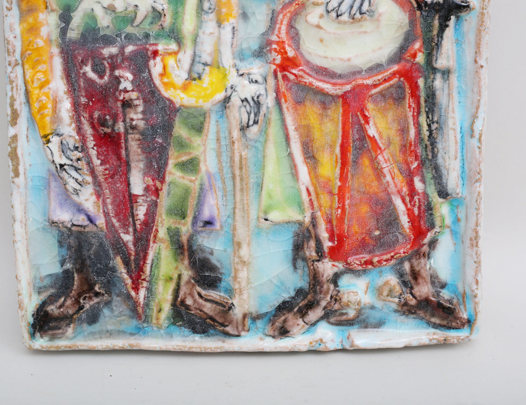 1900-talets andra hälft, glaserad terrakotta, polykrom dekor av medeltida figurer, signerad, 37x25
