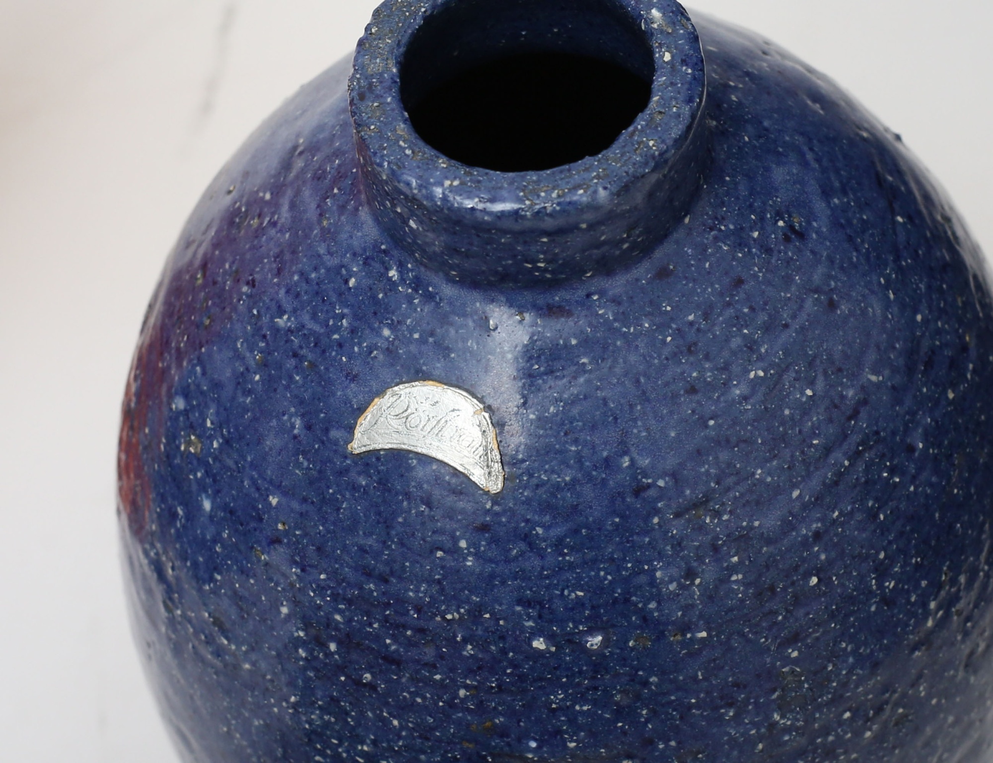 glaserat stengods, höjd 18, vas på fot Erik Höglund, höjd 18, skål signerad, glaserat stengods, diameter 24, skål glaserat stengods, signerad, diameter 18, ljusstake silver GAB 1969, höjd 4,5