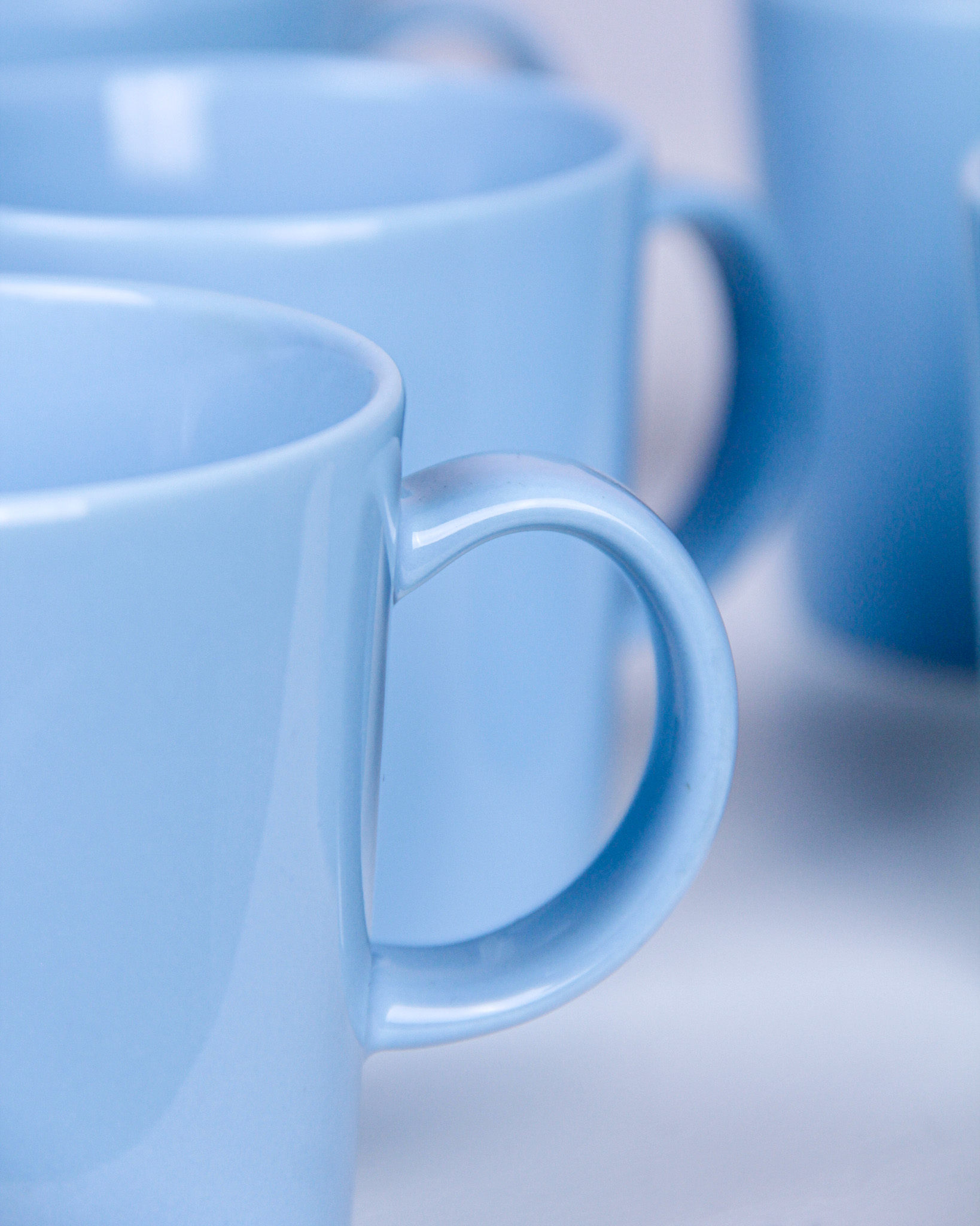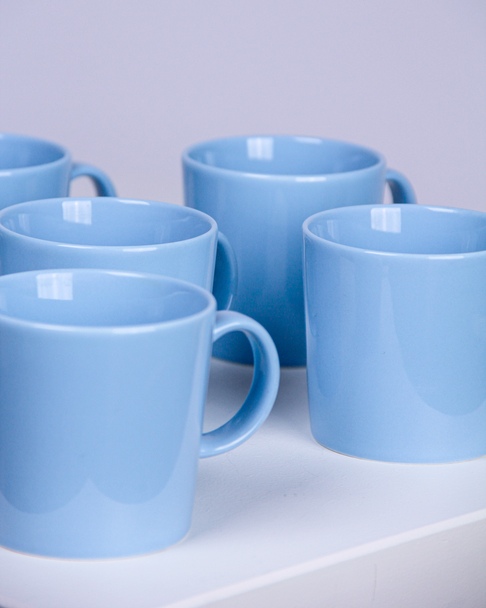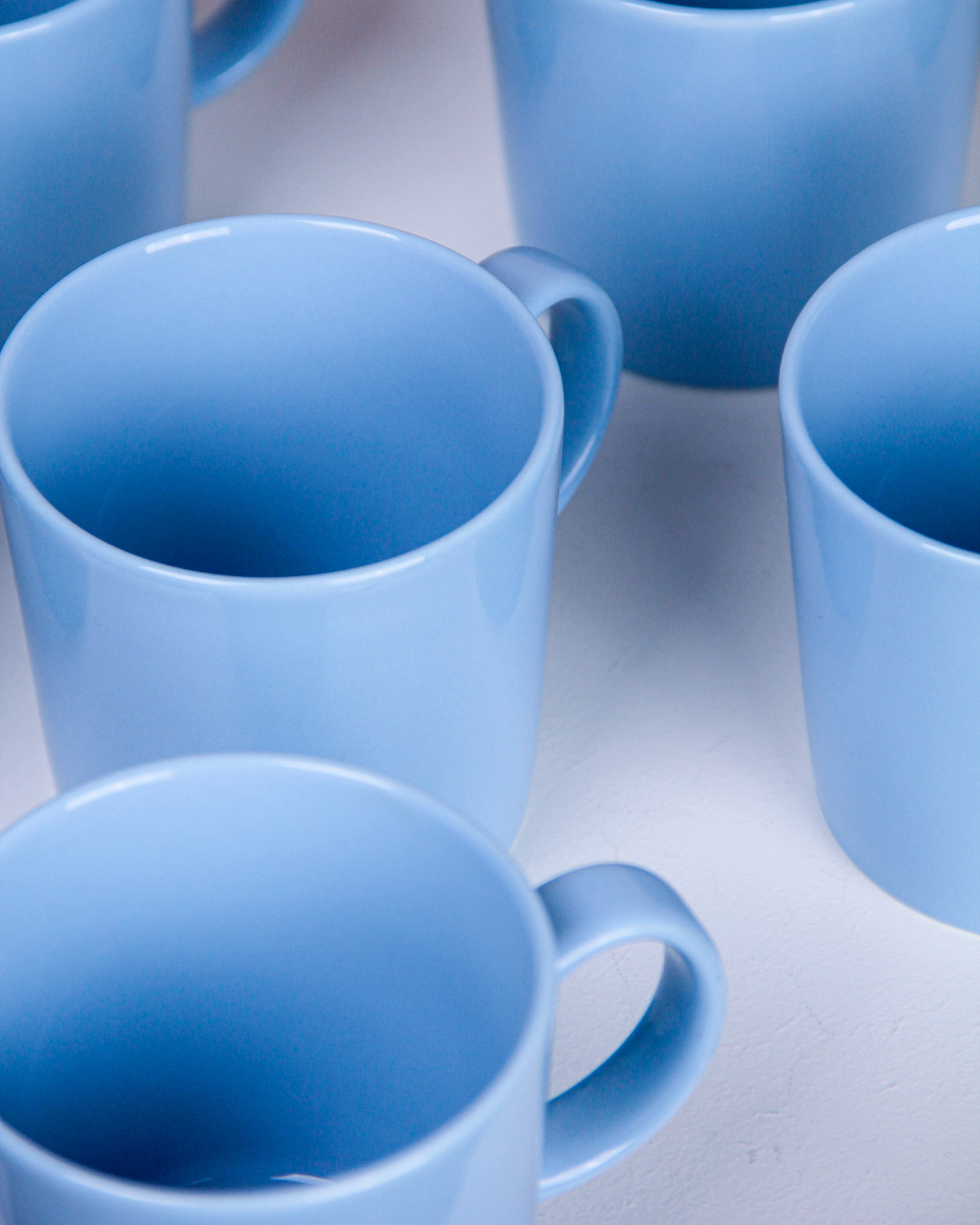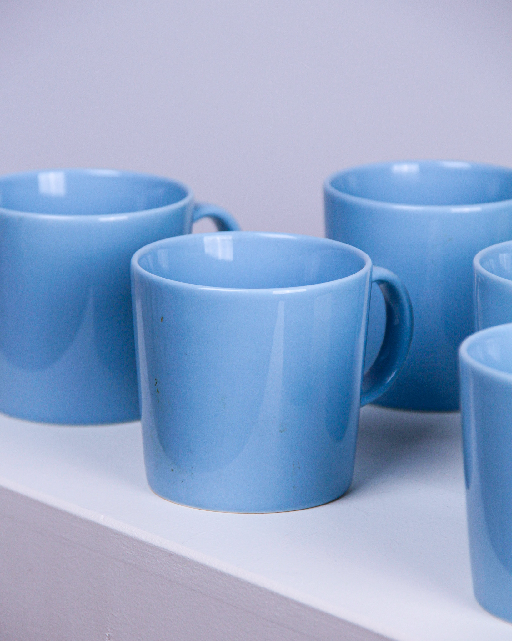 Muggar, 8 st, "Teema", Kaj Franck, blåglaserat porslin, Iittala