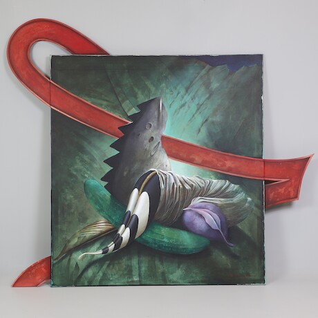 Bert Johnny Nilsson, olja på duk / collage, tot mått 188 x 217