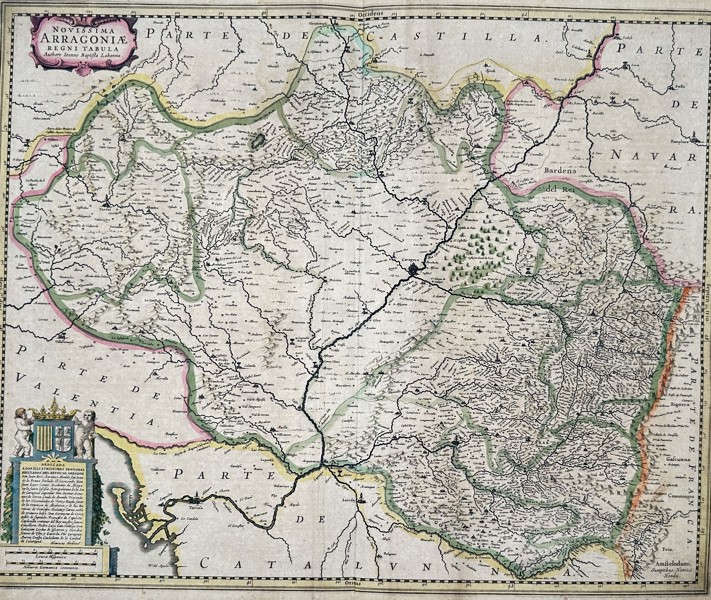 Bilder Henricus Hondius (1597–1651) – Map of the Kingdom of Aragon – Hand-colored engraving (17th Century)