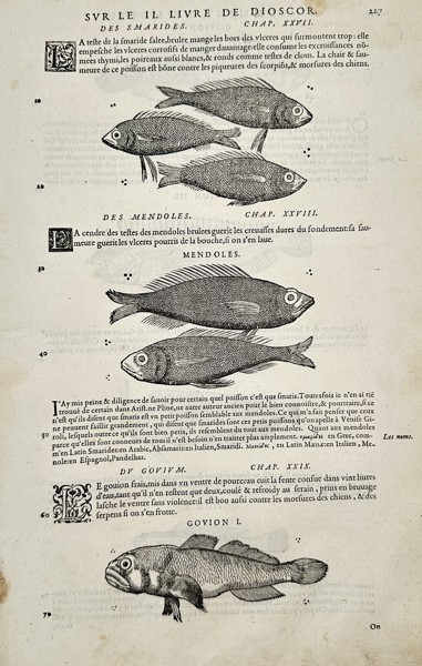 Bilder Pietro Andrea Mattioli (1501–1578) – Ichthyological Study of Picarel, Mendole, and Gudgeon – Woodcut (16th Century)