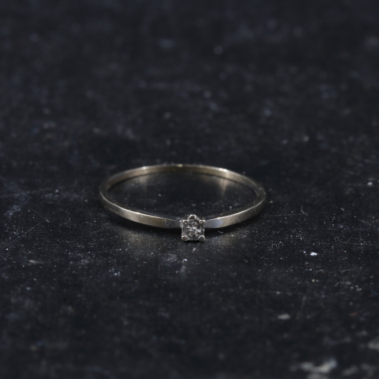 18 karat vitguld med liten diamant, bredd 1-3 mm, strl:17 mm, vikt 0,70 gram. (vån3)