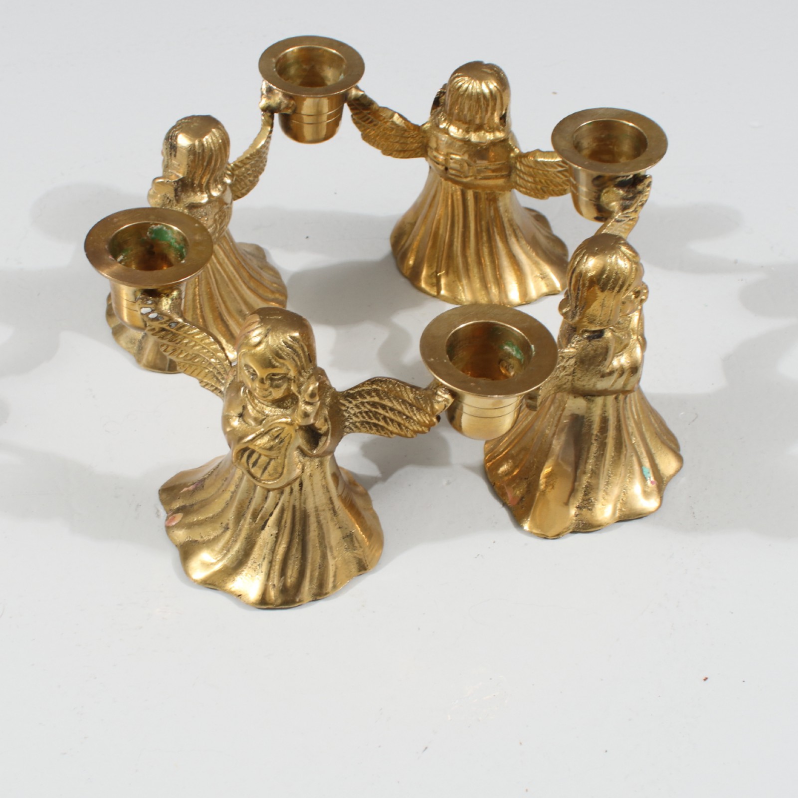Mässing, 4st ljushållare med änglar, höjd 8 cm, diameter 19 cm. (vån3)