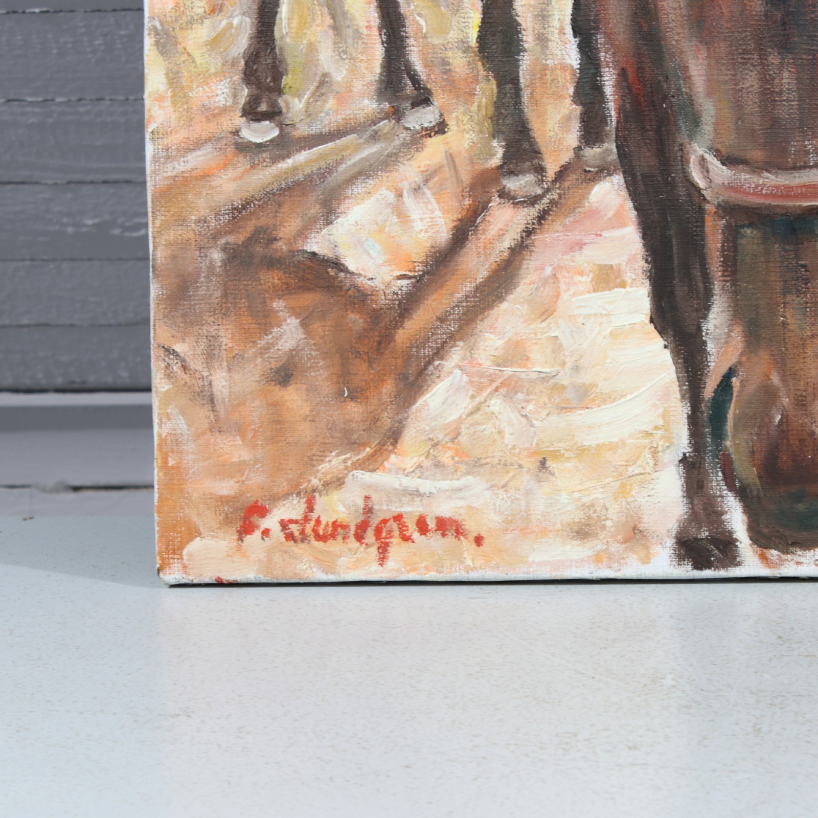 Olja på duk, "Flicka med häst", 54x65 cm. (vån3)
