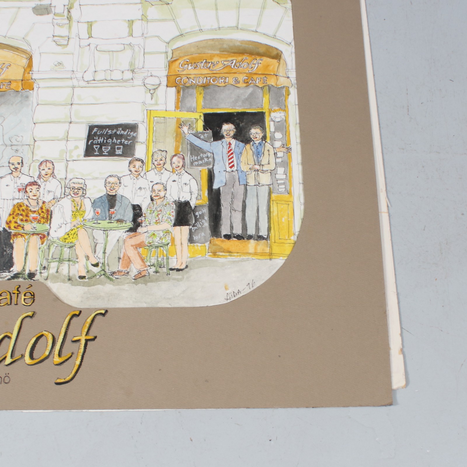 Blandteknik, Restaurang & Café "Gustav Adolf", Malmö, signerad Aida samt daterad -96, 72x102 cm. (vån1)