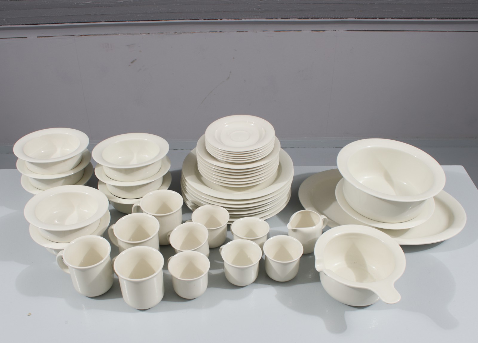 44 delar, 8st mattallrikar, 1st djup tallrik, 8st frukostskålar, 1st skål, 1st uppl.fat, 1st såskanna, 6st kaffekoppar, 6st kaffefat, 4st muggar, 7st assietter samt 1st gräddkanna. (vån3)