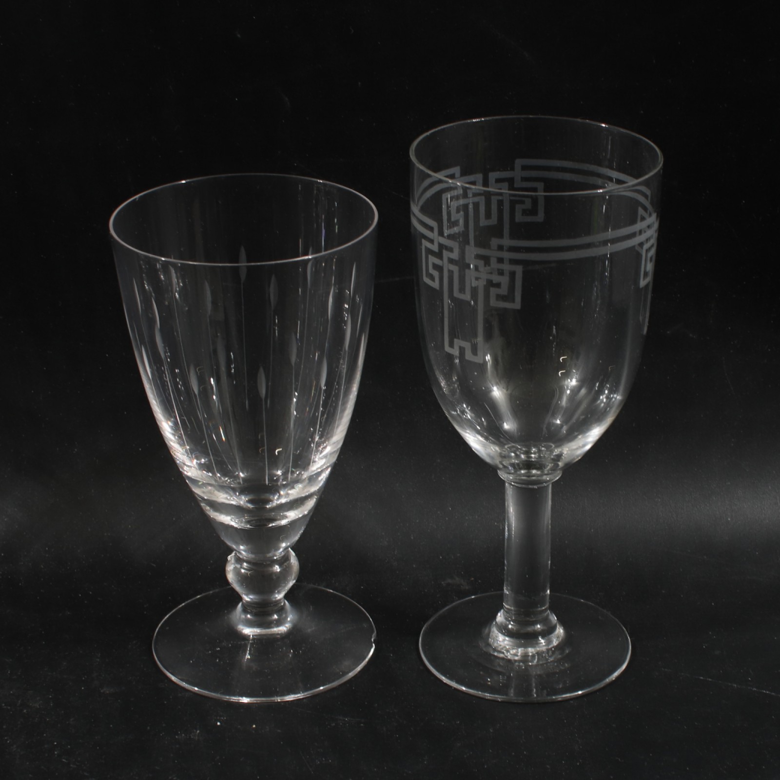 12 (8+4) stycken öl/vinglas, 8st med slipad dekor H.14 cm samt 4st med etsad dekor H.16 cm. (vån3)