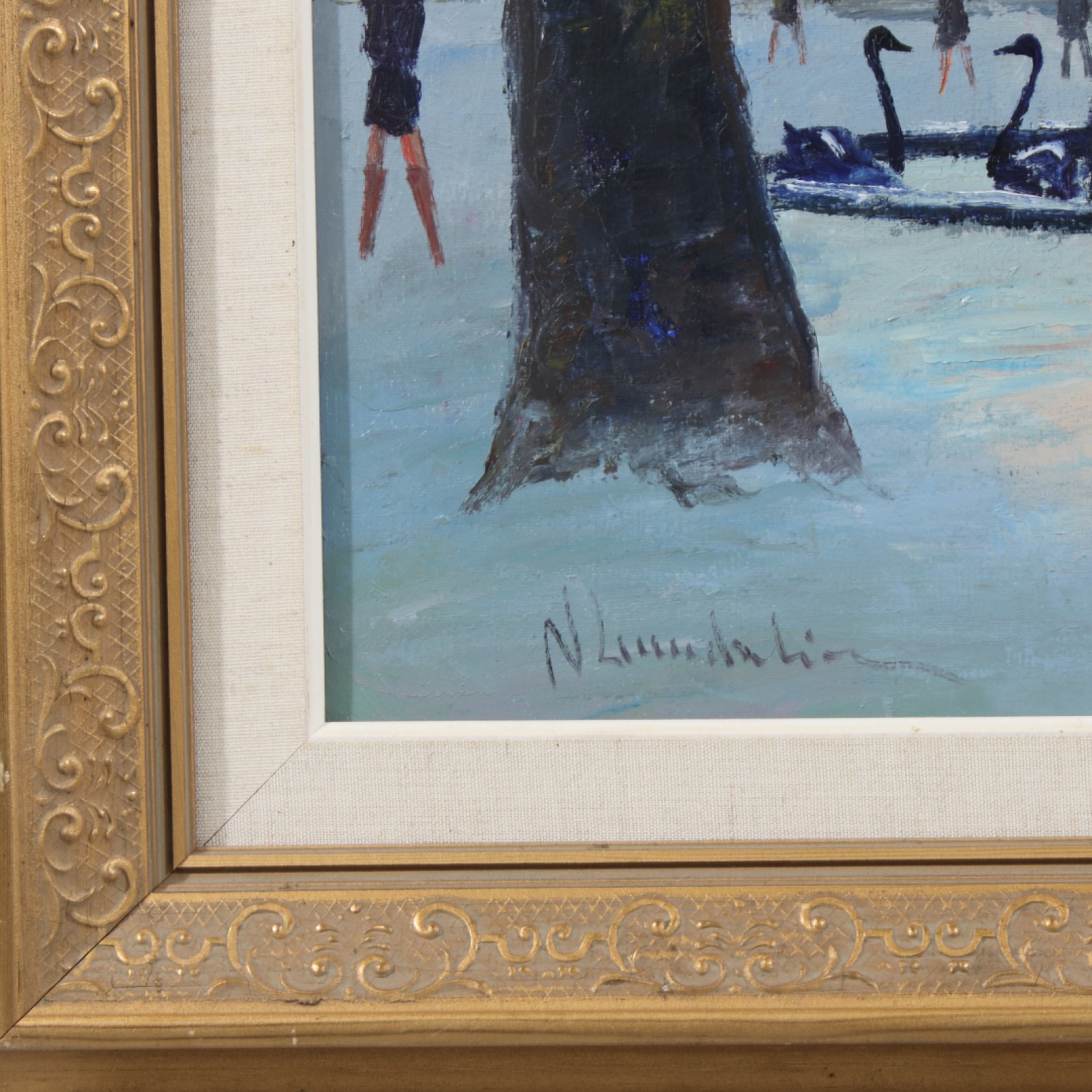 Olja på duk, "Kungsträdgården, Stockholm", ram 74x65 cm, bild 53x44 cm. (vån3)
