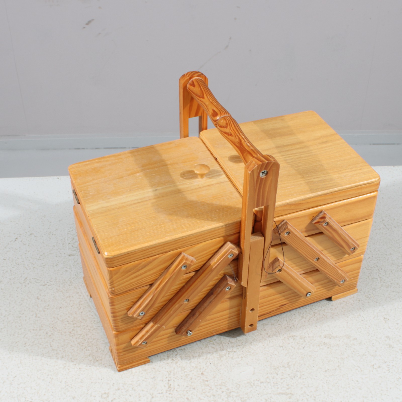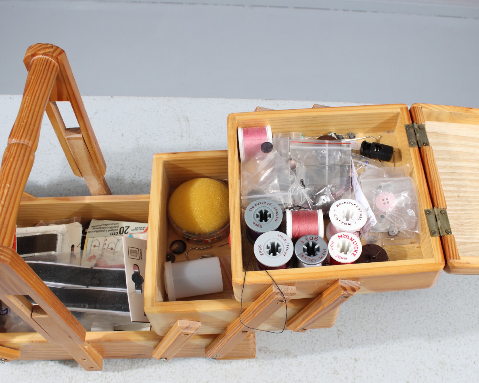 Skrin i trä, för innehåll se bilder, höjd 19 cm, bredd 32-68 cm. (vån3). (vån3)