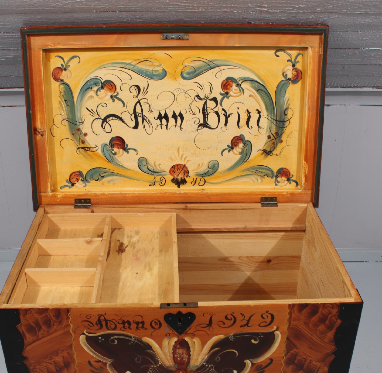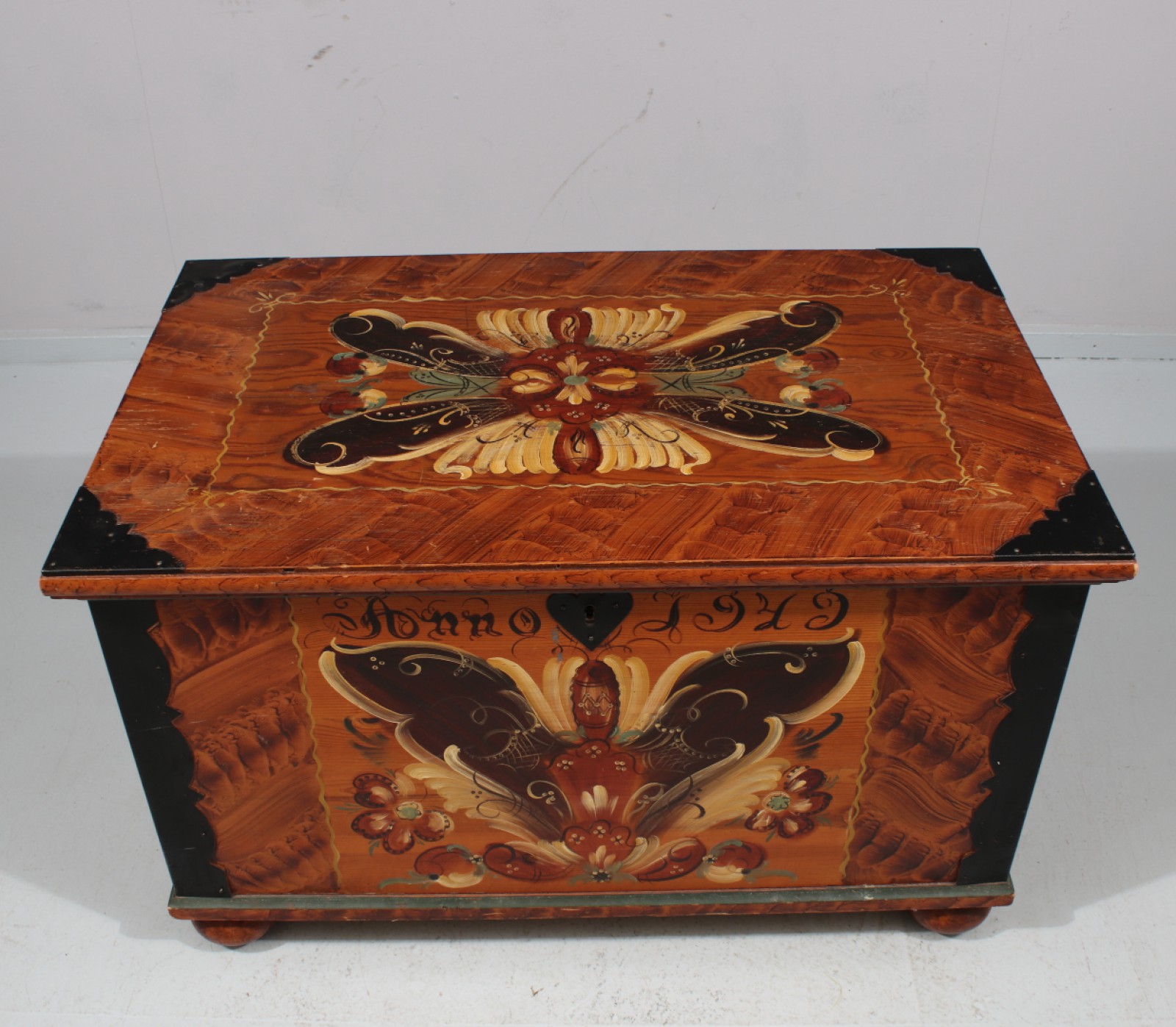 Ådrings och kurbitsmålad, datering 1949, upplåst men nyckel saknas, mindre åldersrelaterat slitage, H.48,5, B.79,5, Dj.49,5 cm. (vån2)
