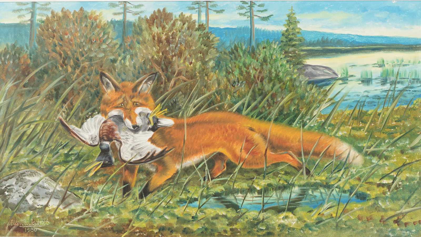 Auktioner Konst & Grafik TAVLA Elis Barkstedt, olja på duk, signerad & daterad 1930. 88x49cm bildytans mått