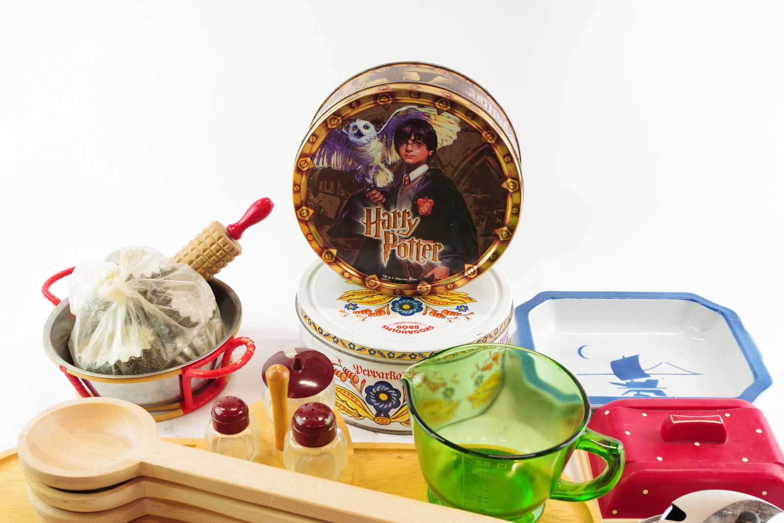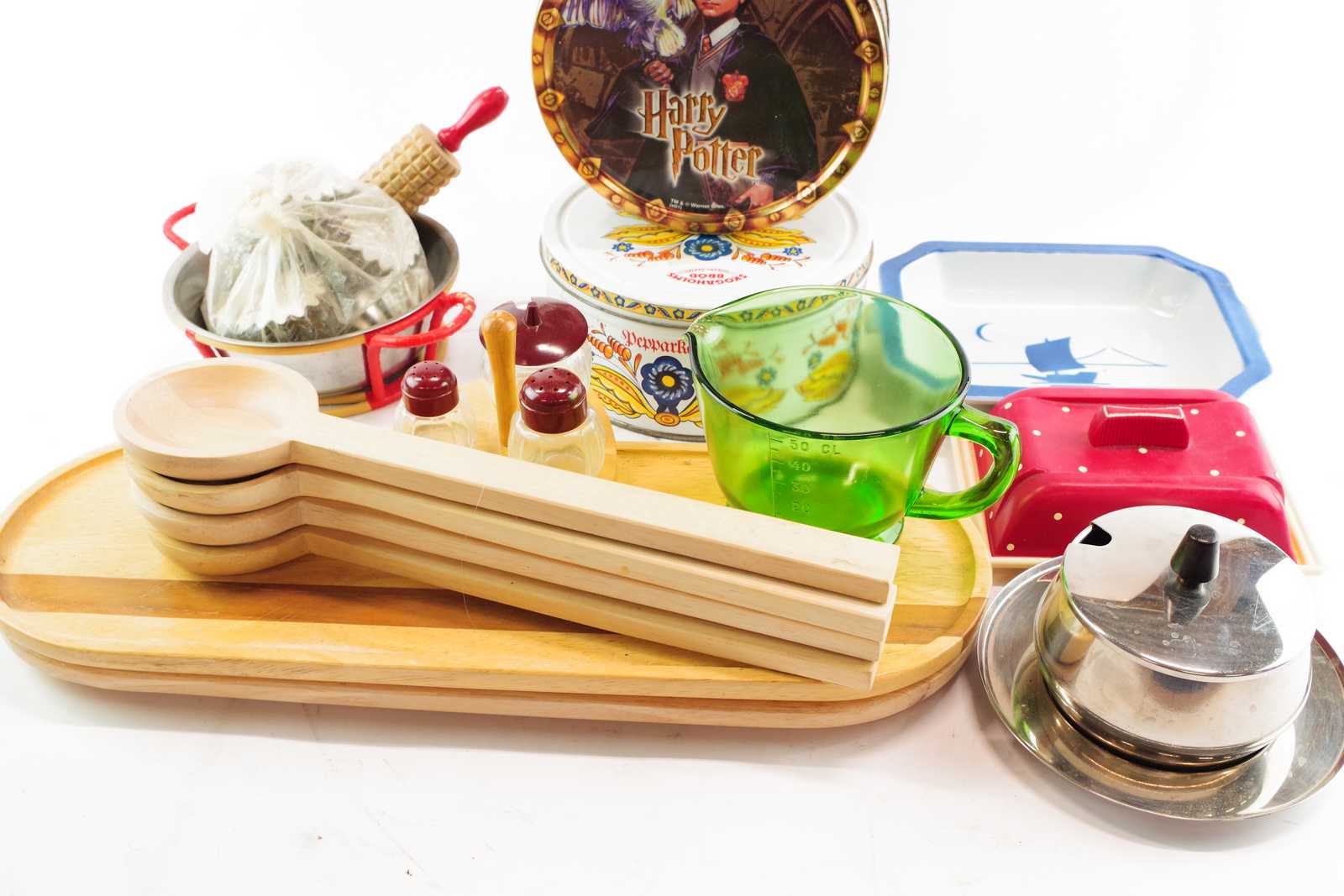 Bilder HUSGERÅD Skärbräda, salladsbestick Arabia, kakformar, rostfritt, smörform retro, kryddställ mm