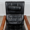 Stomme i teak. Klädsel i läder. Ställbar rygg.