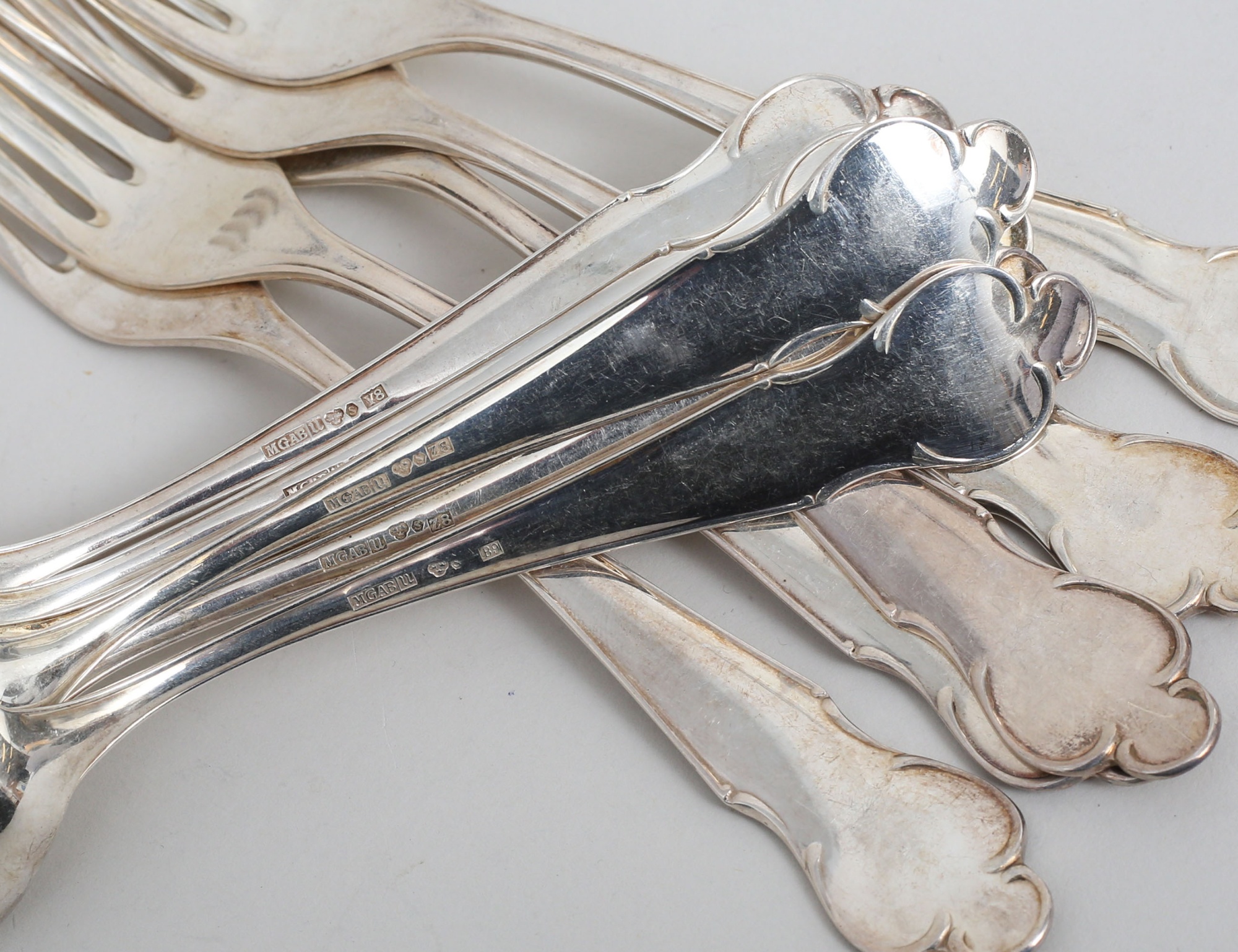 6 bordsskedar samt 5 gafflar, Markströms Uppsala 1940/50-tal, vikt 414 gram