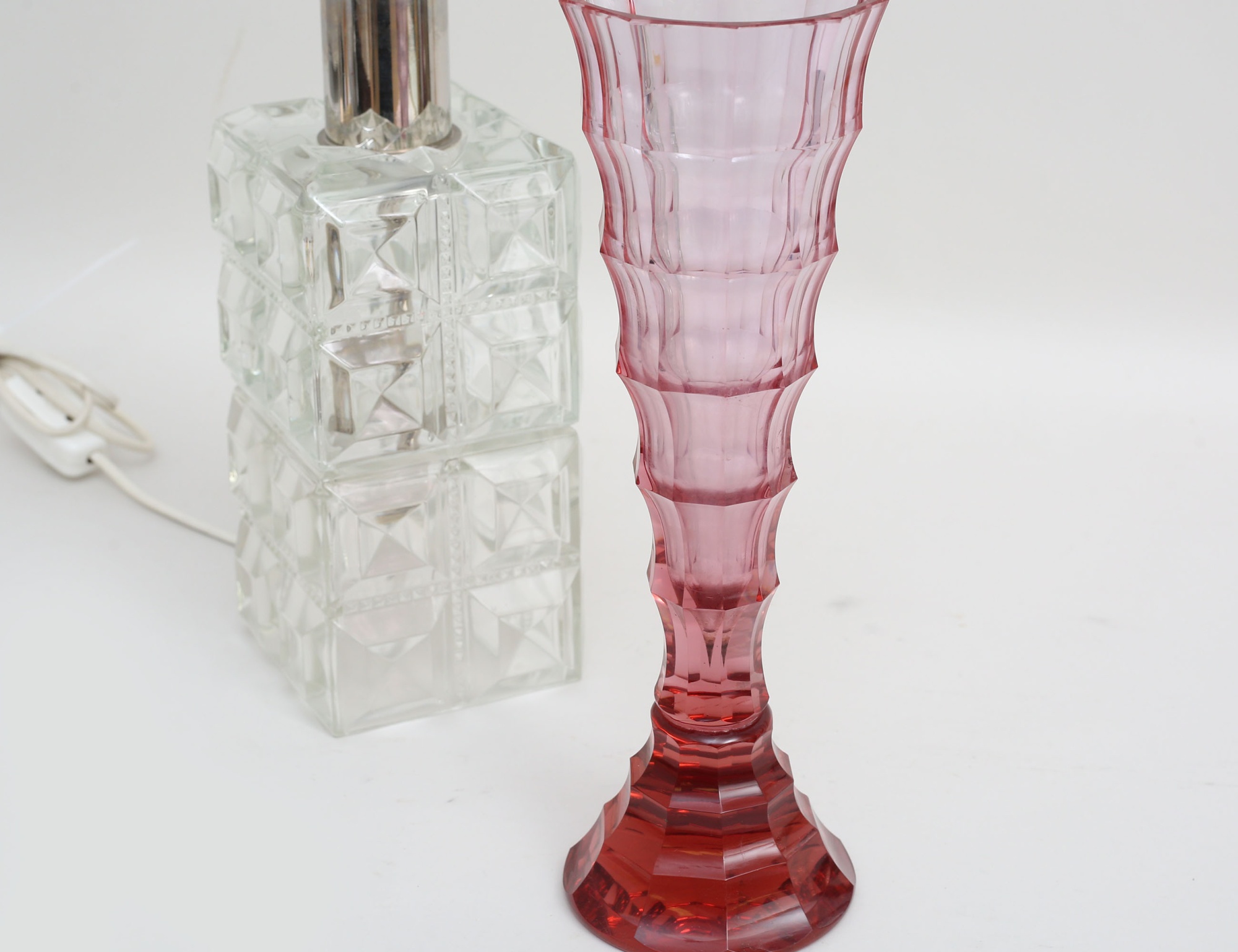 glas, etikettmärkt Konsthantverk Tyringe, höjd 31, vas Trelleborg 1940-tal , höjd 30 (inskription) (2)