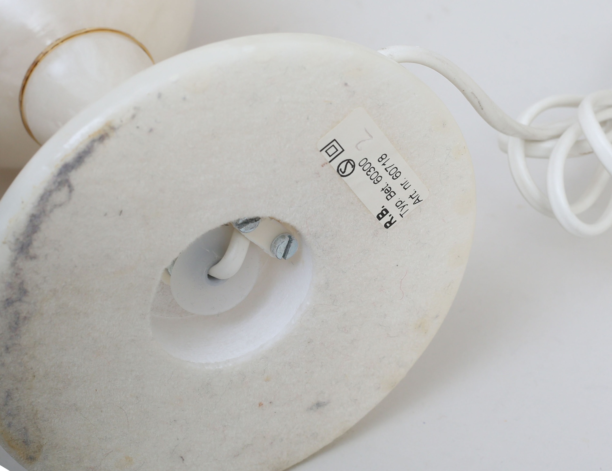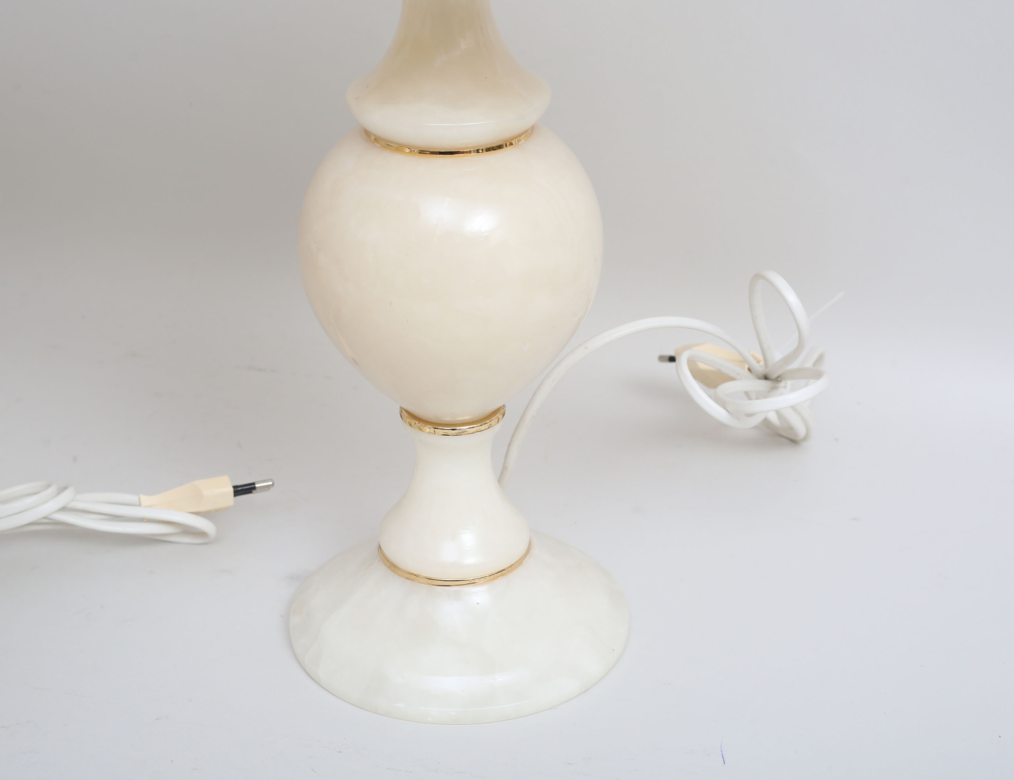 alabaster, mässingsdekor, textilskärmar, höjd 39 (55)