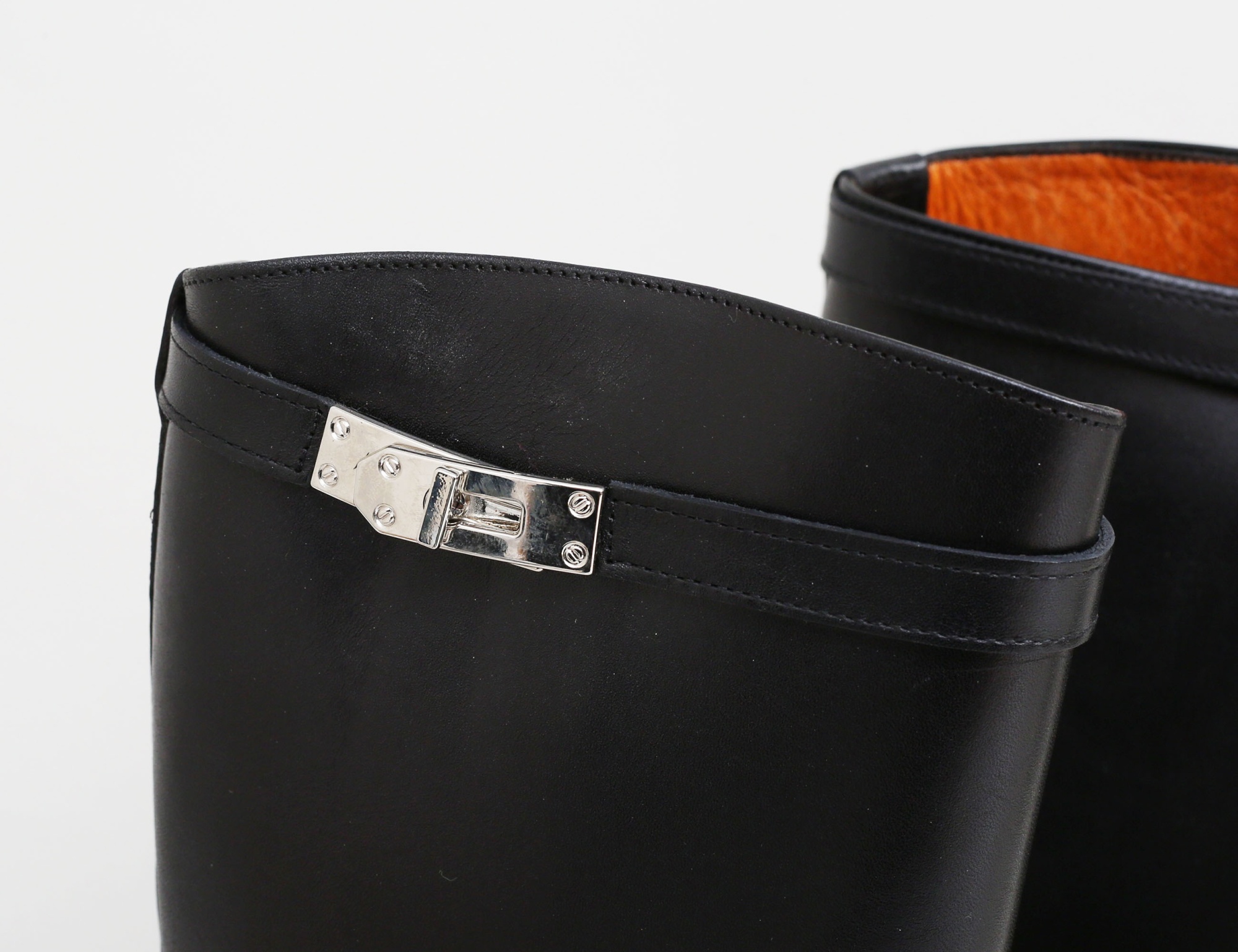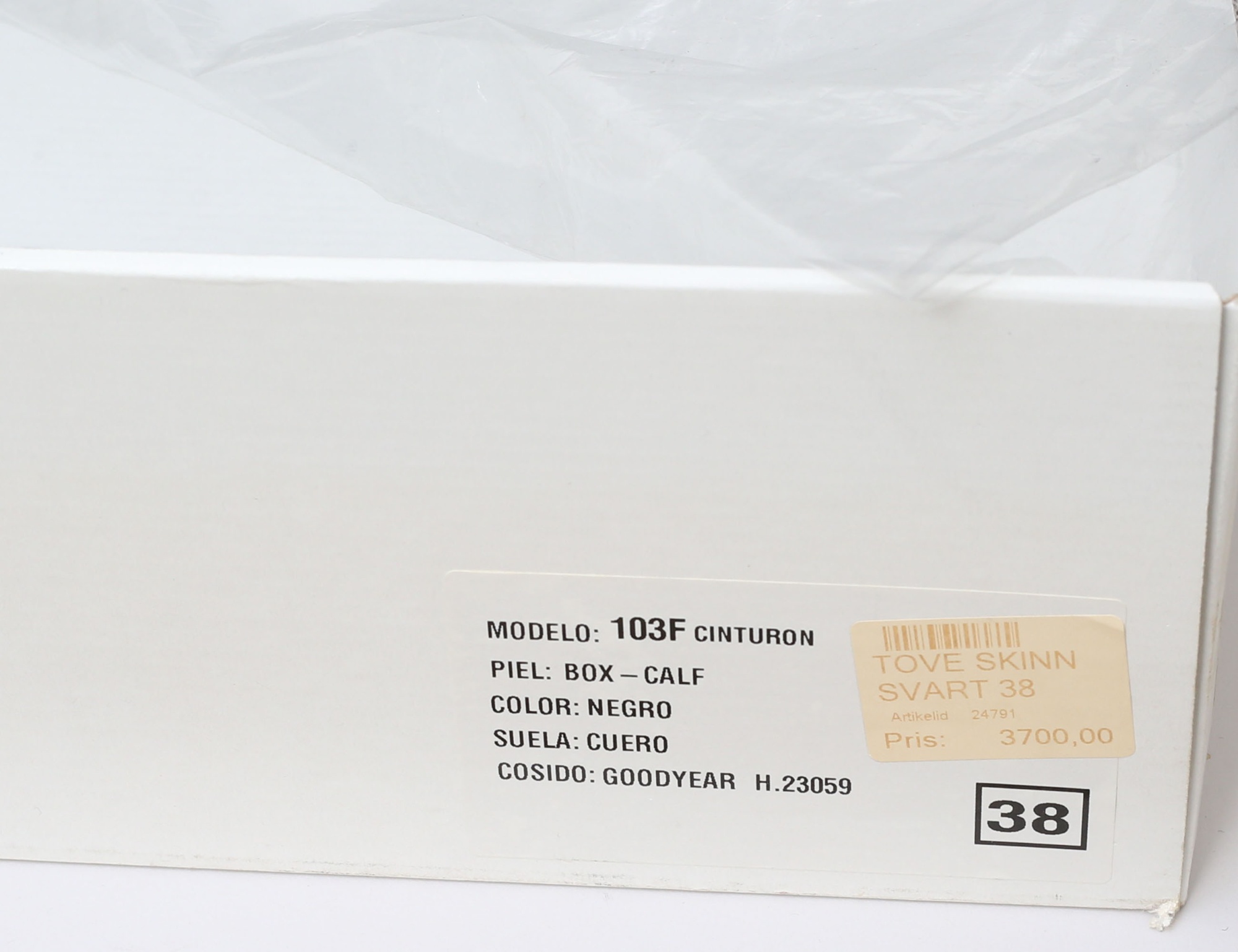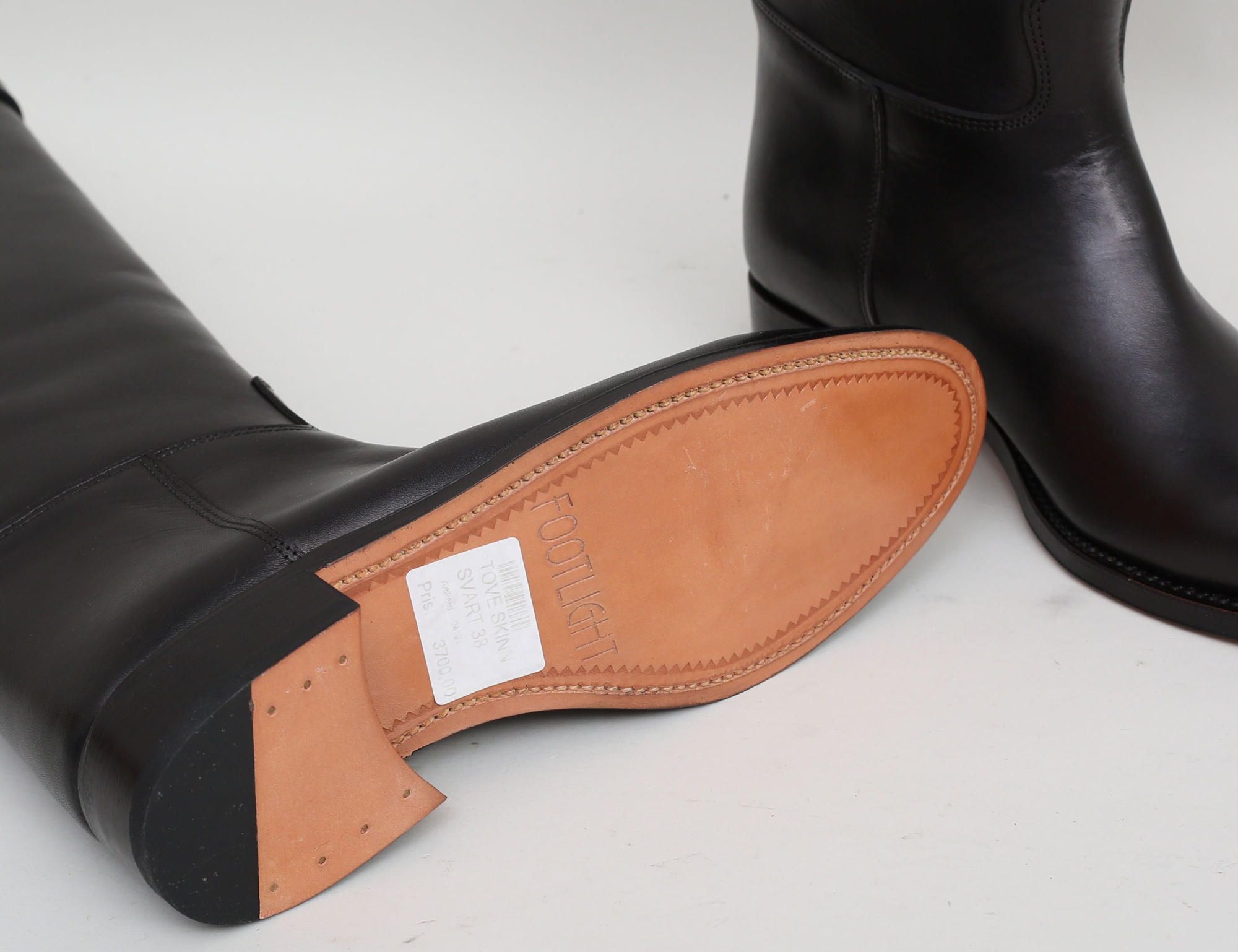 svart läder, elegant ridstövel modell med spänne, storlek 38 (oanvända i originalkartong)