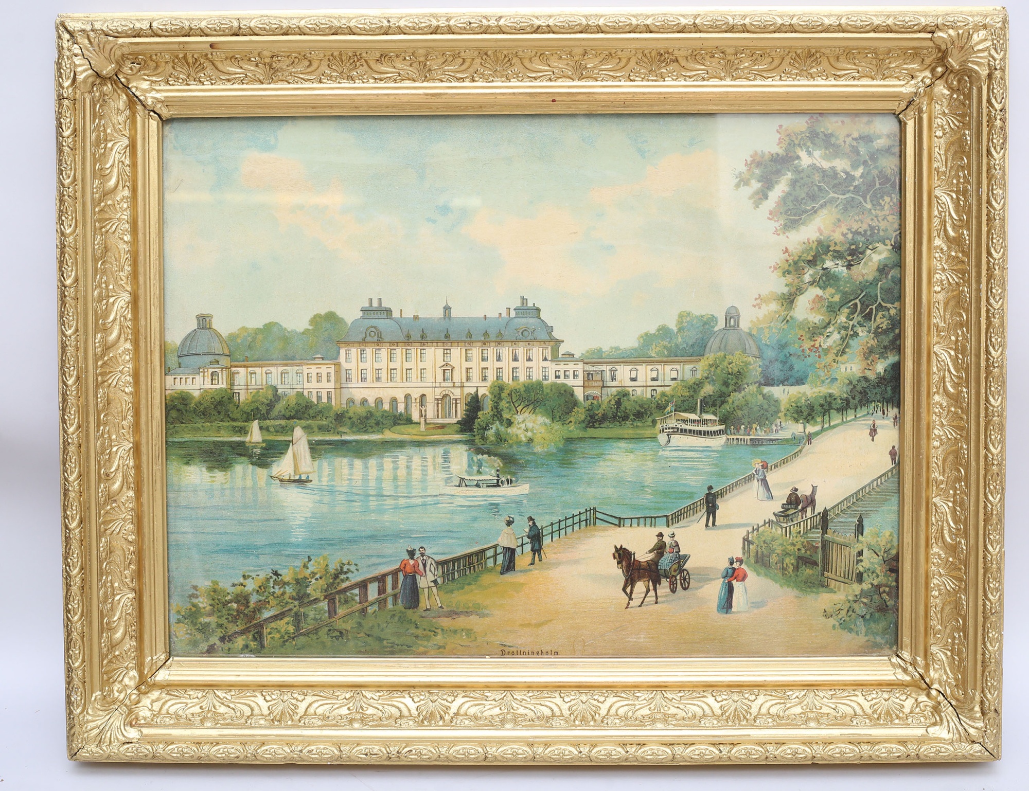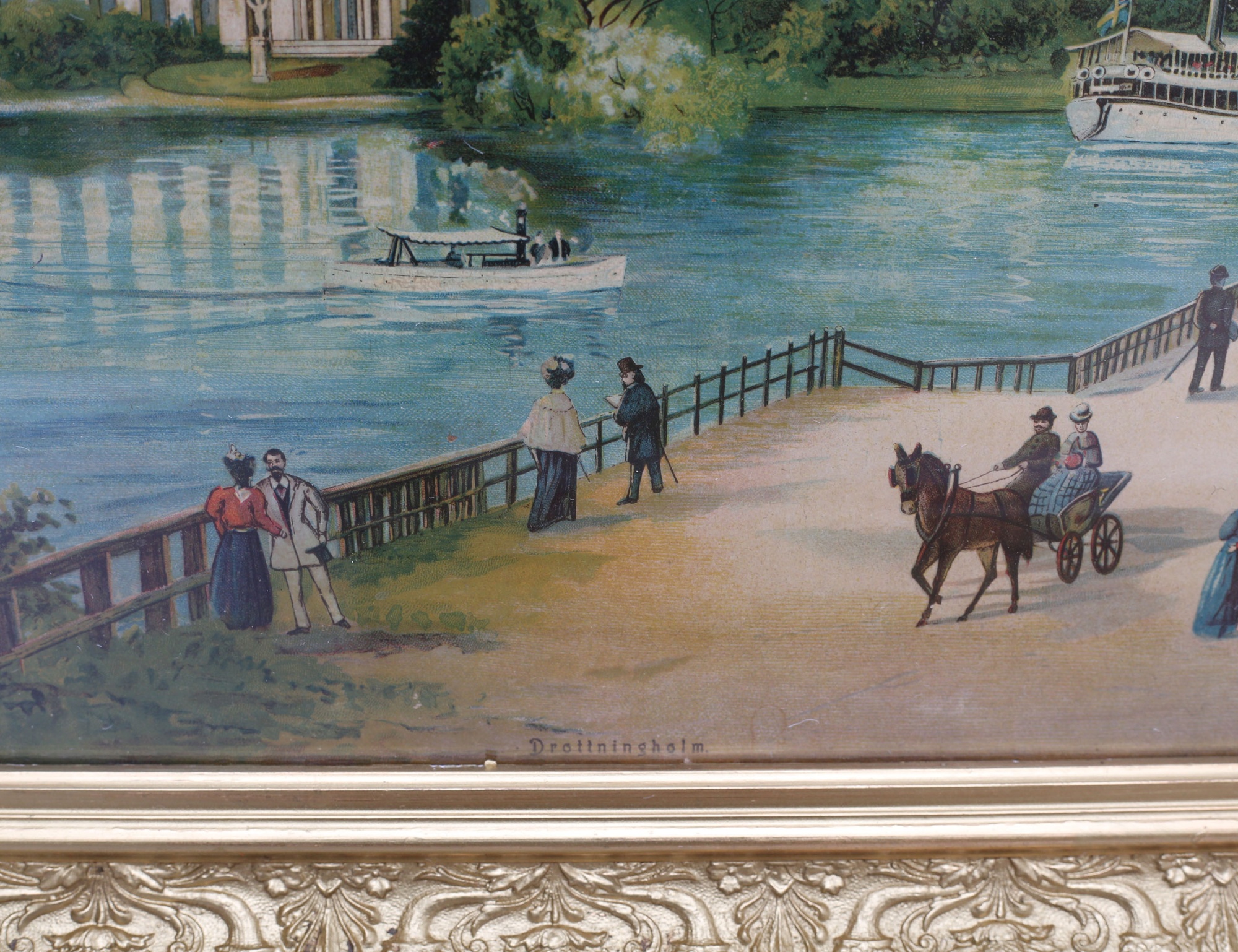 Ulriksdals slott respektive Drottningholm, samtida bronserade ramar, rammått 49x63