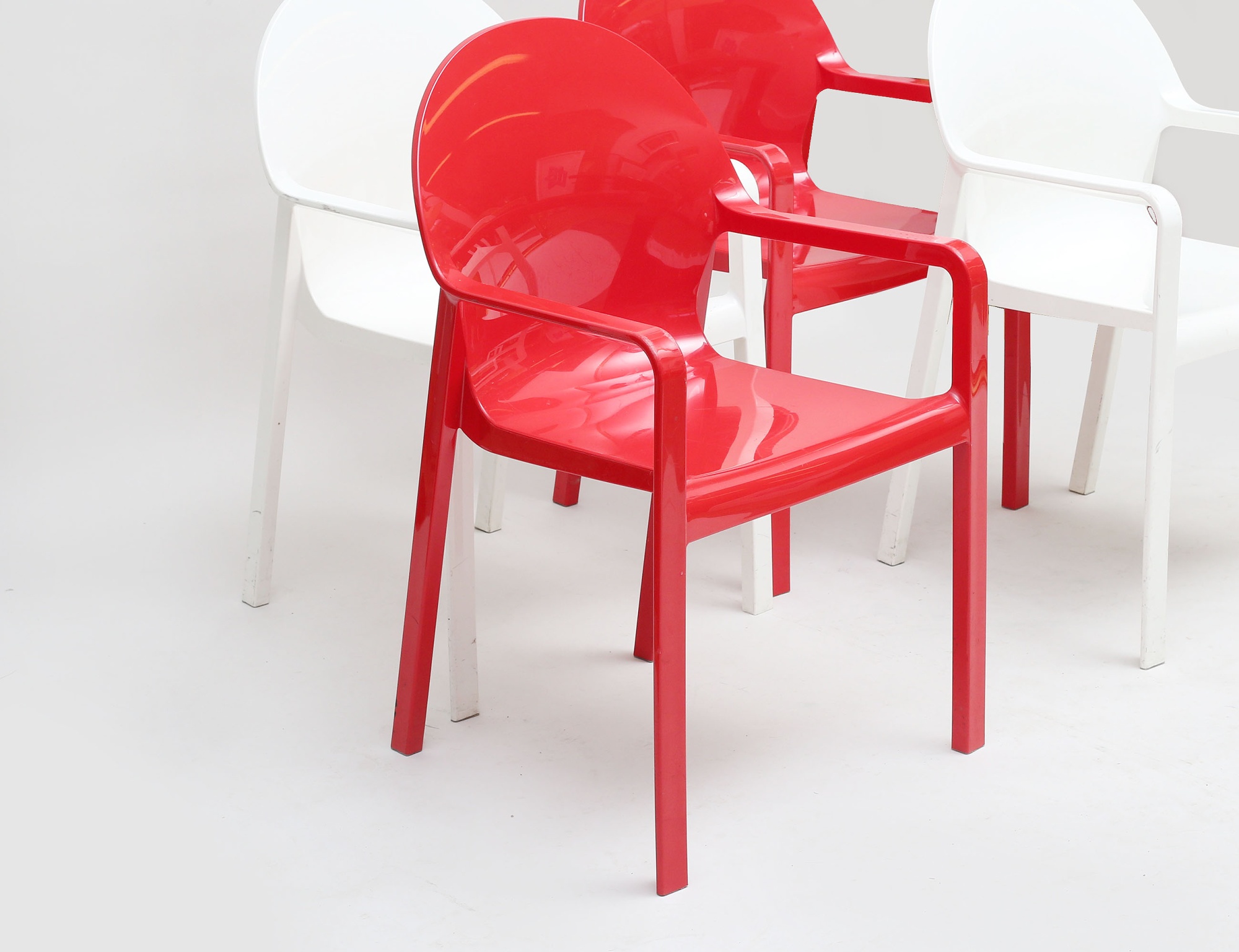 Richard Sapper för Magis, två röda respektive två vita, polymaid, stapelbara, höjd 89 (repor, avskav)