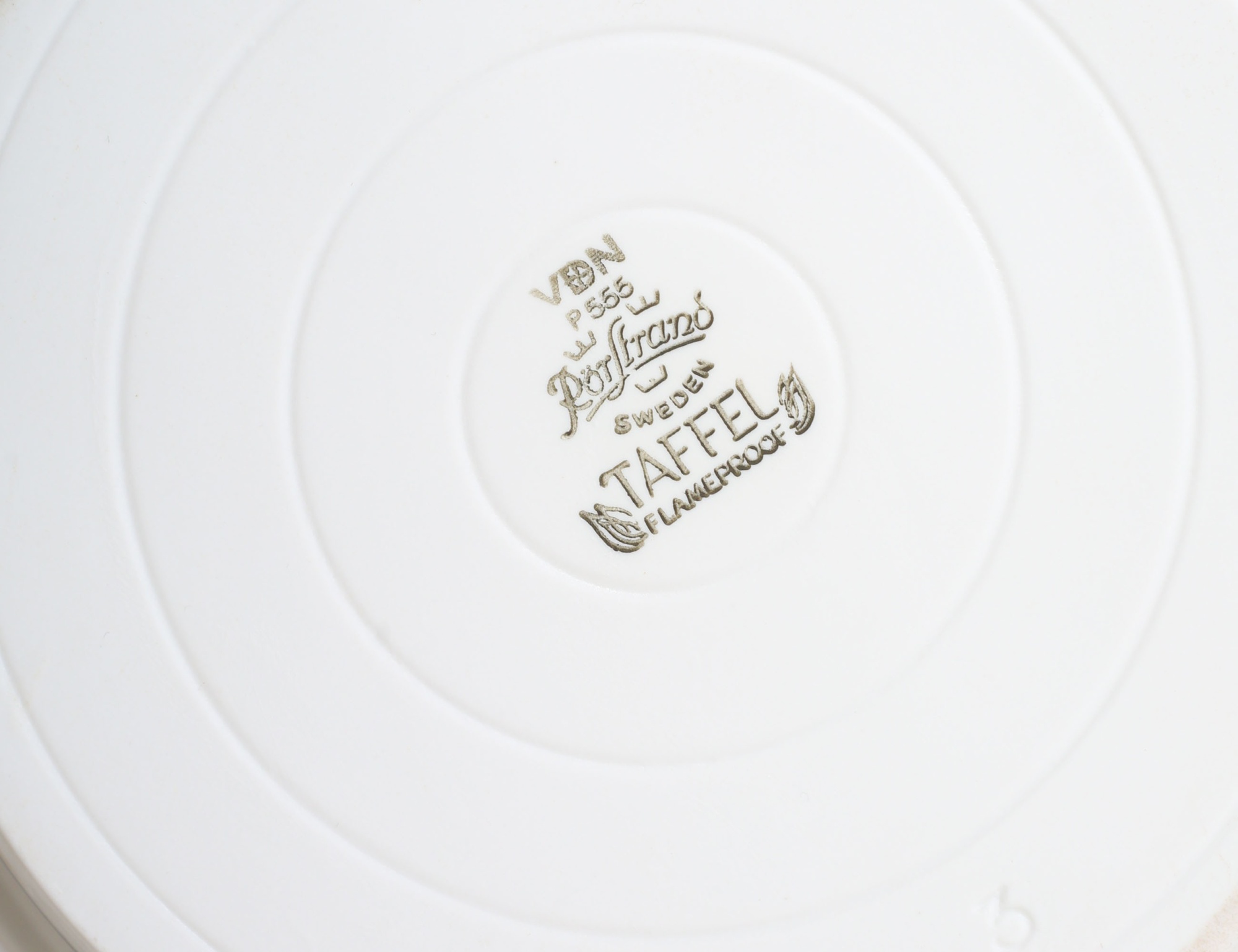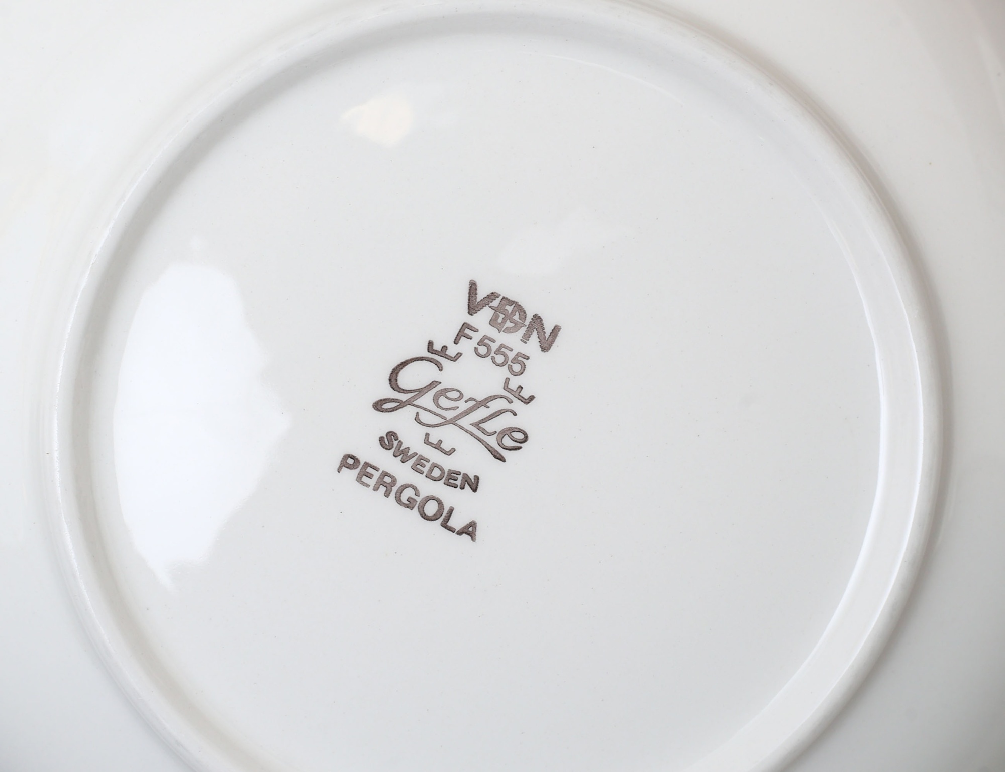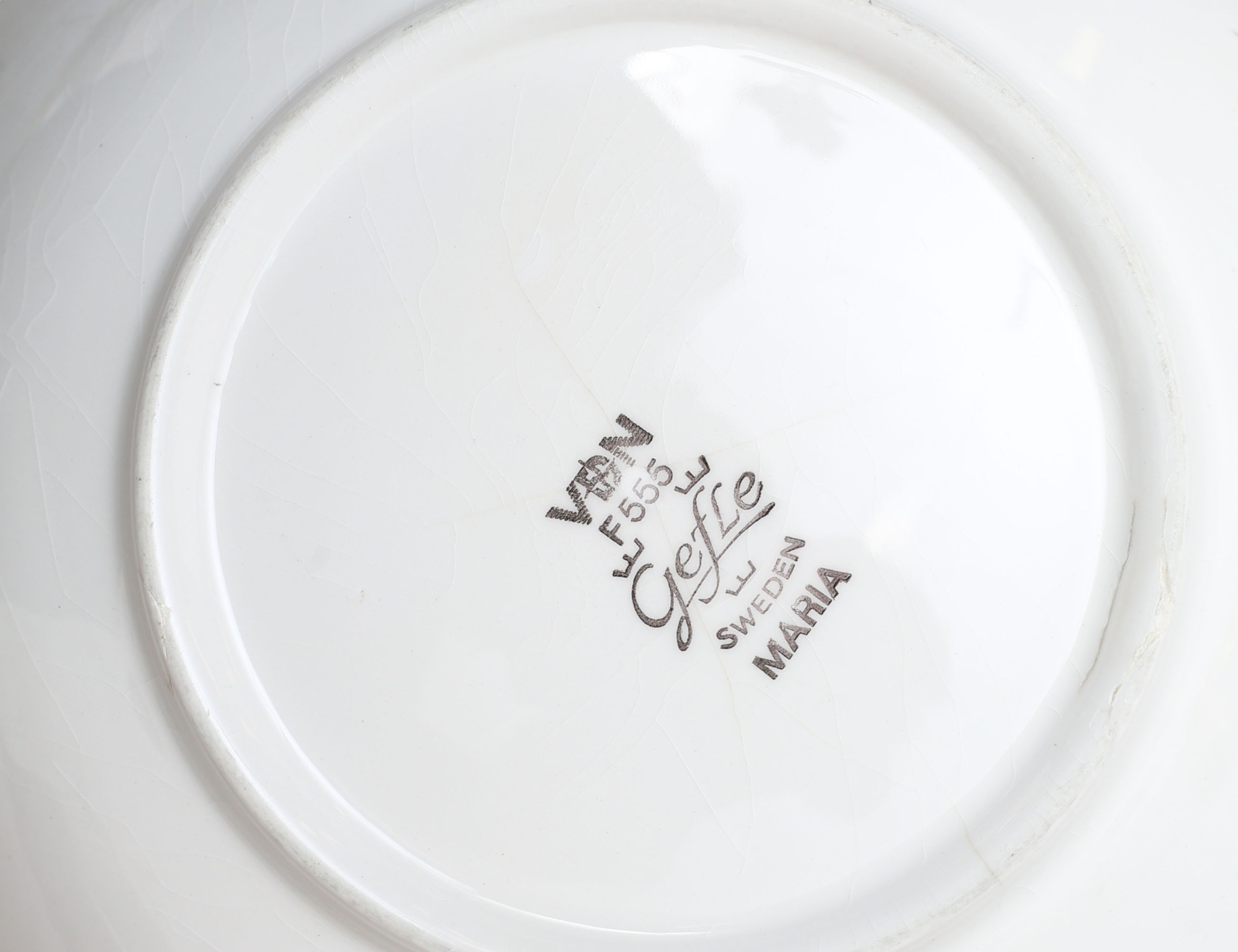 9 mattallrikar, 4 djupa samt 8 assietter - "Pergola" Gefle, 3 djupa - "Maria" Gefle, 4 äggoppar, såskanna, skål samt burk med lock - "Taffel", Olle Alberius Rörstrand
