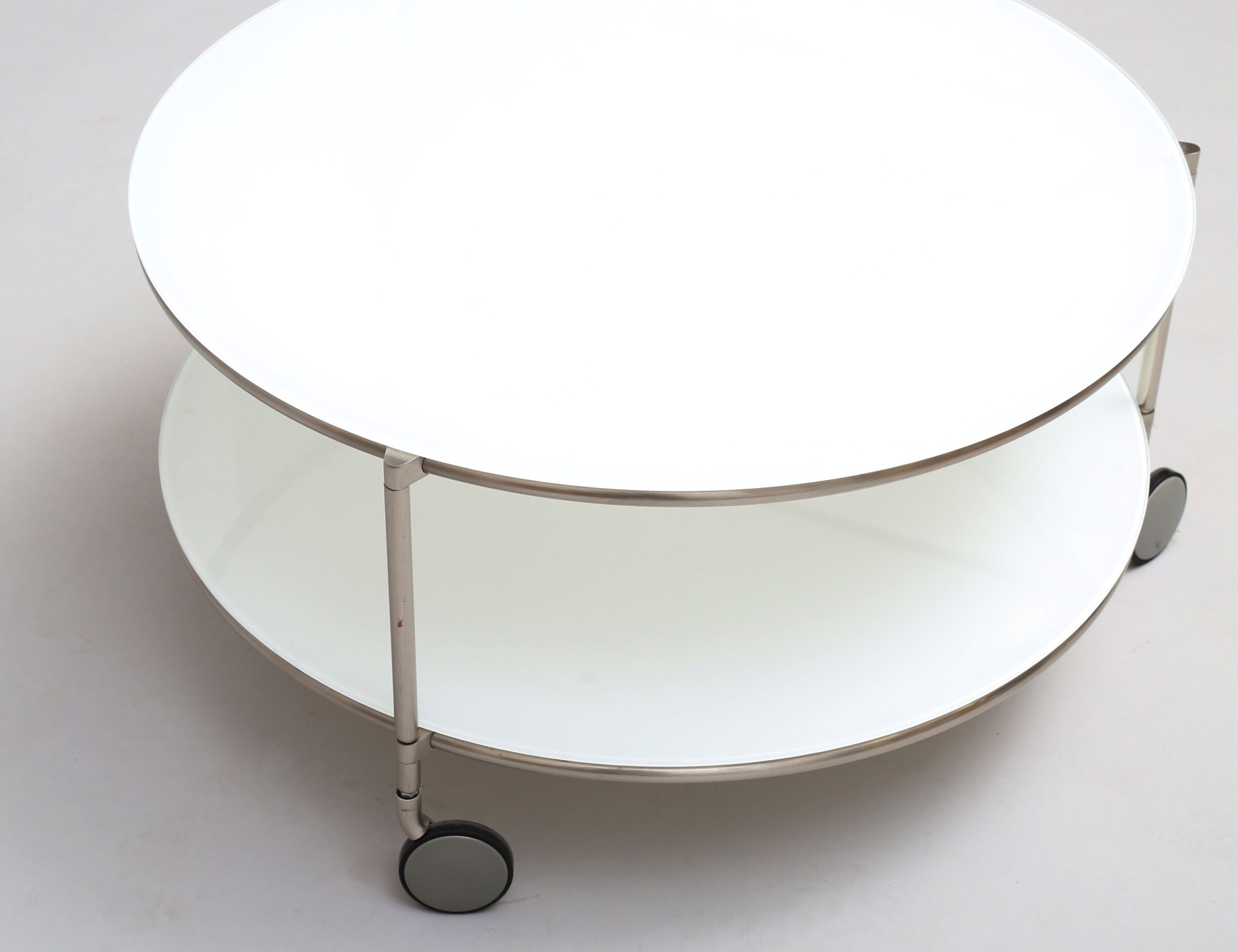 Ehlén Johansson för IKEA, glas och kromad metall, på hjul, höjd 40, diameter 75 (smärre fläck)