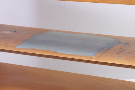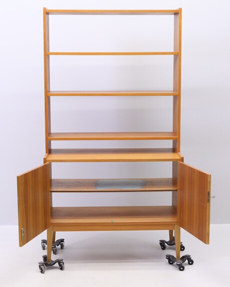 Hyllor 2 st, 1960-tal, teak, 158 X 60-85 X 40 cm, en nyckel