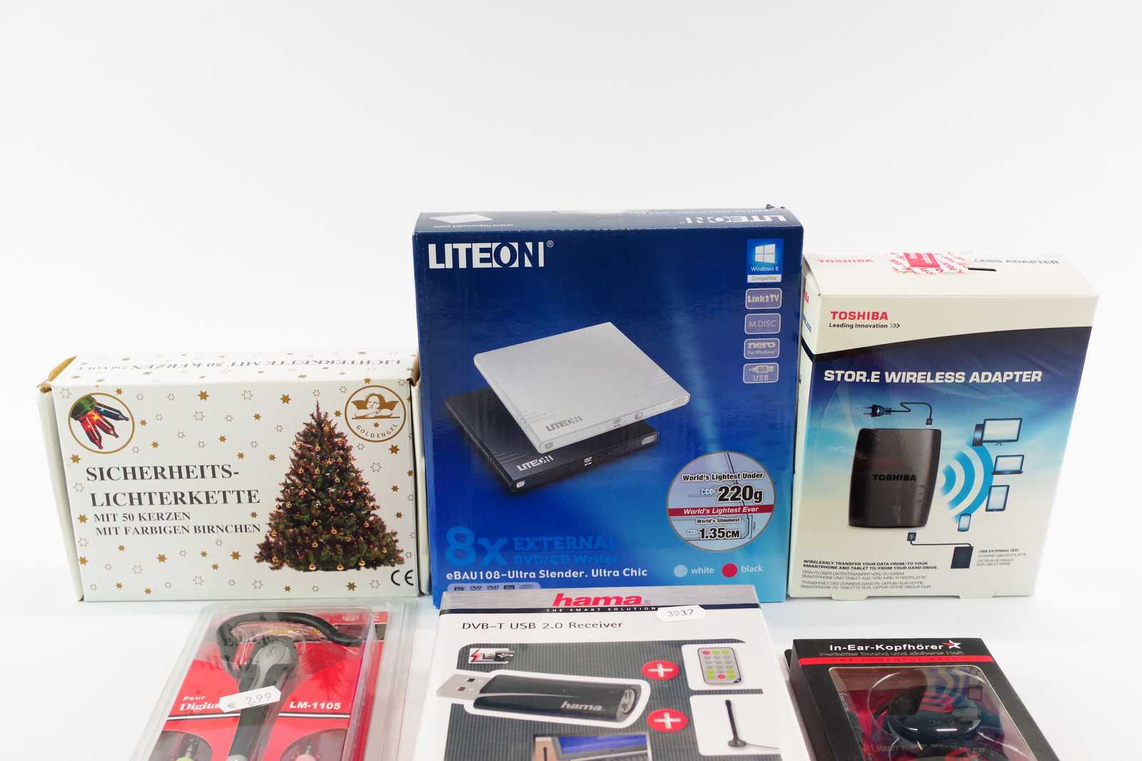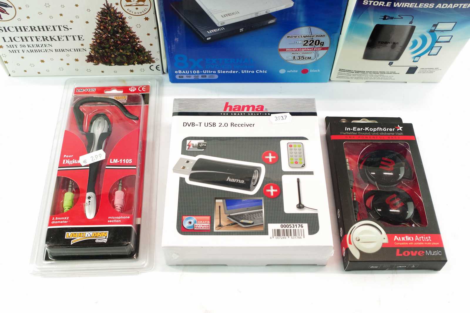 Bilder LJUSSLINGA, ADAPTER, HÖRLURAR, DVD-LÄSARE mm Nytt