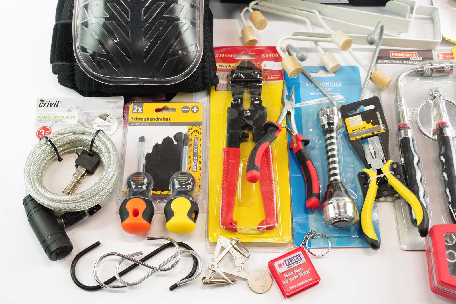CYKELLÅS, FICKLAMPA, TÄNGER, SKRUVMEJSLAR, KROKAR mm Nytt